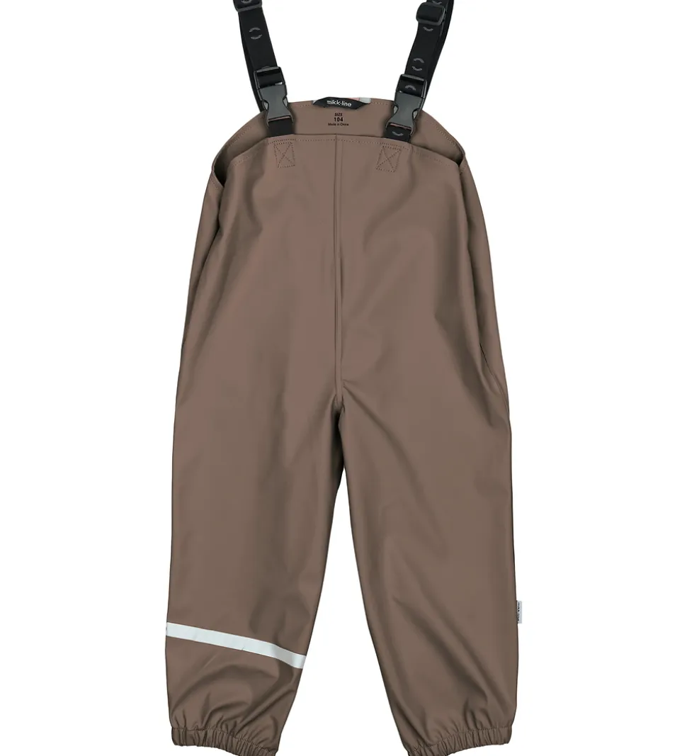 Flot Mikk-Line regntøj bestående af en regnjakke og et par regnbukser i ensfarvet, brun PU.