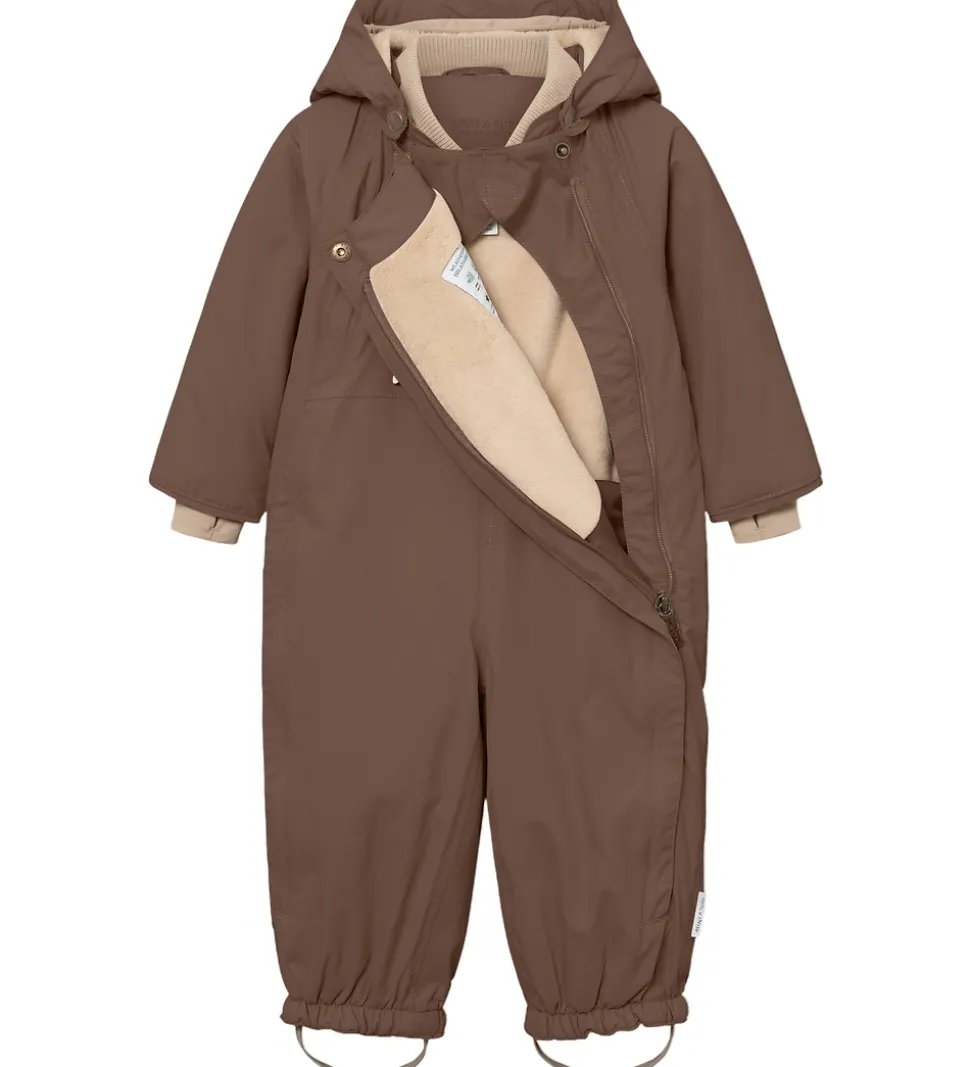 Fin Mini A Ture flyverdragt i kastanjebrun. Flyverdragten er med beige for.