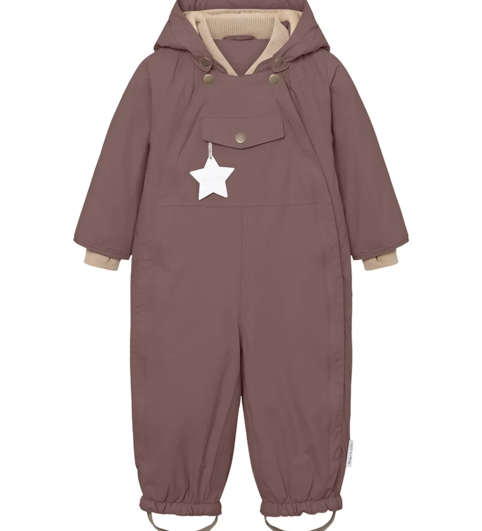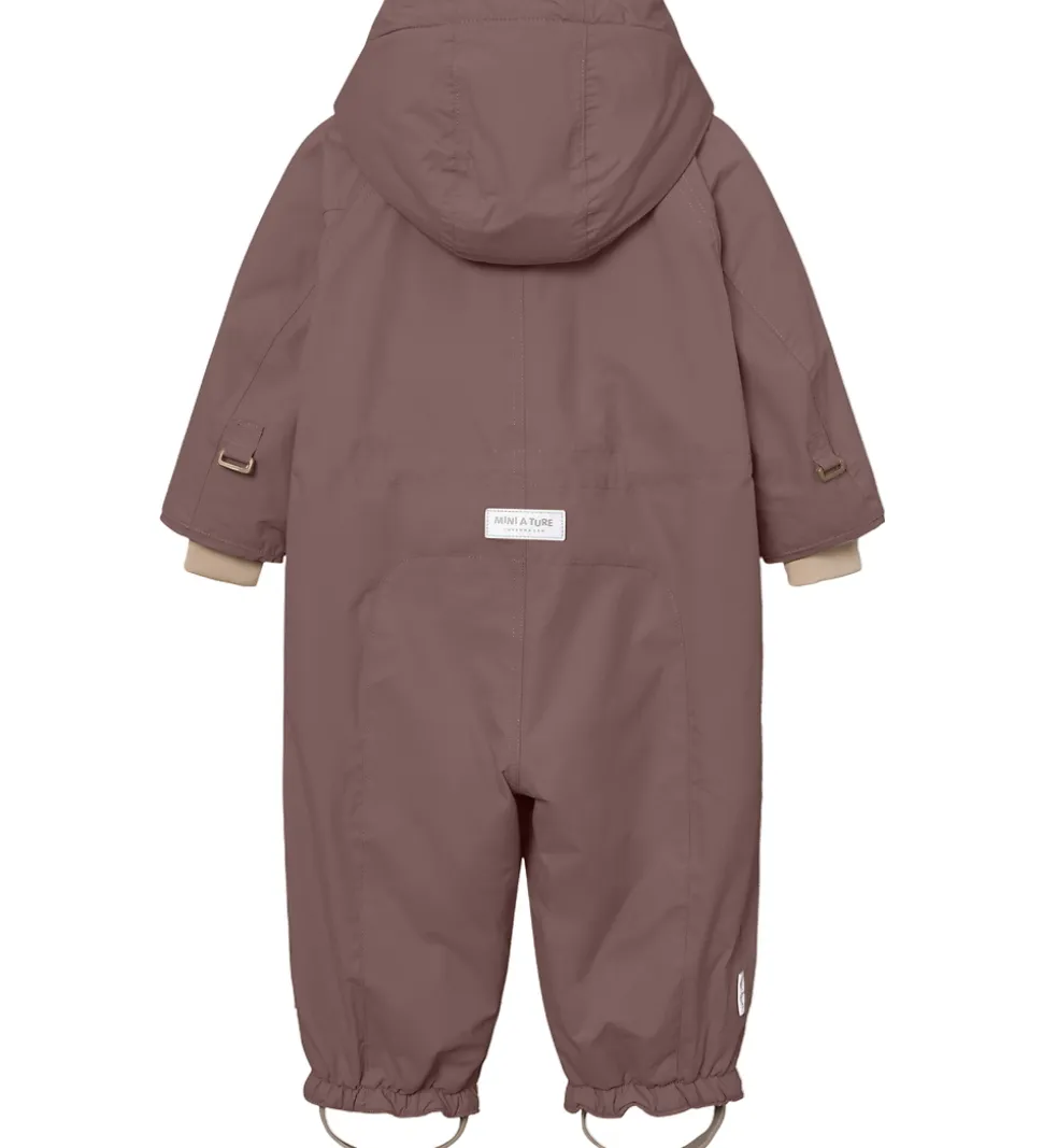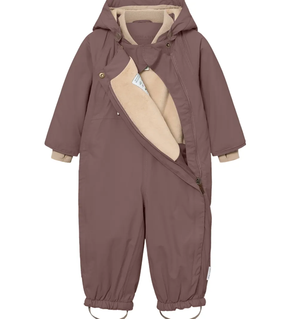 Fin Mini A Ture flyverdragt i mat, mørk blommelilla. Flyverdragten er med beige for.