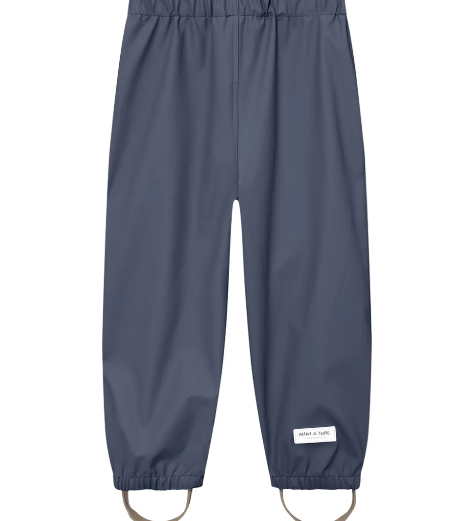 Lækkert Mini A Ture regntøj bestående af en regnjakke og et par regnbukser i ensfarvet navy PU.