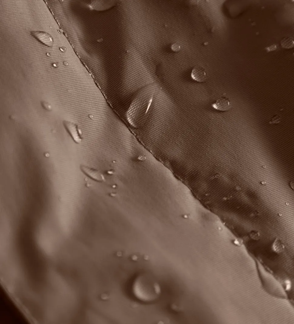 Mini A Ture anorakken har en fast hætte med en bred ribkant i ansigtsåbningen. Anorakkens ærmer har også brede ribkanter, og på ydersiden af ærmet er der en plastring, som man kan hægte handsker og luffer fast i.