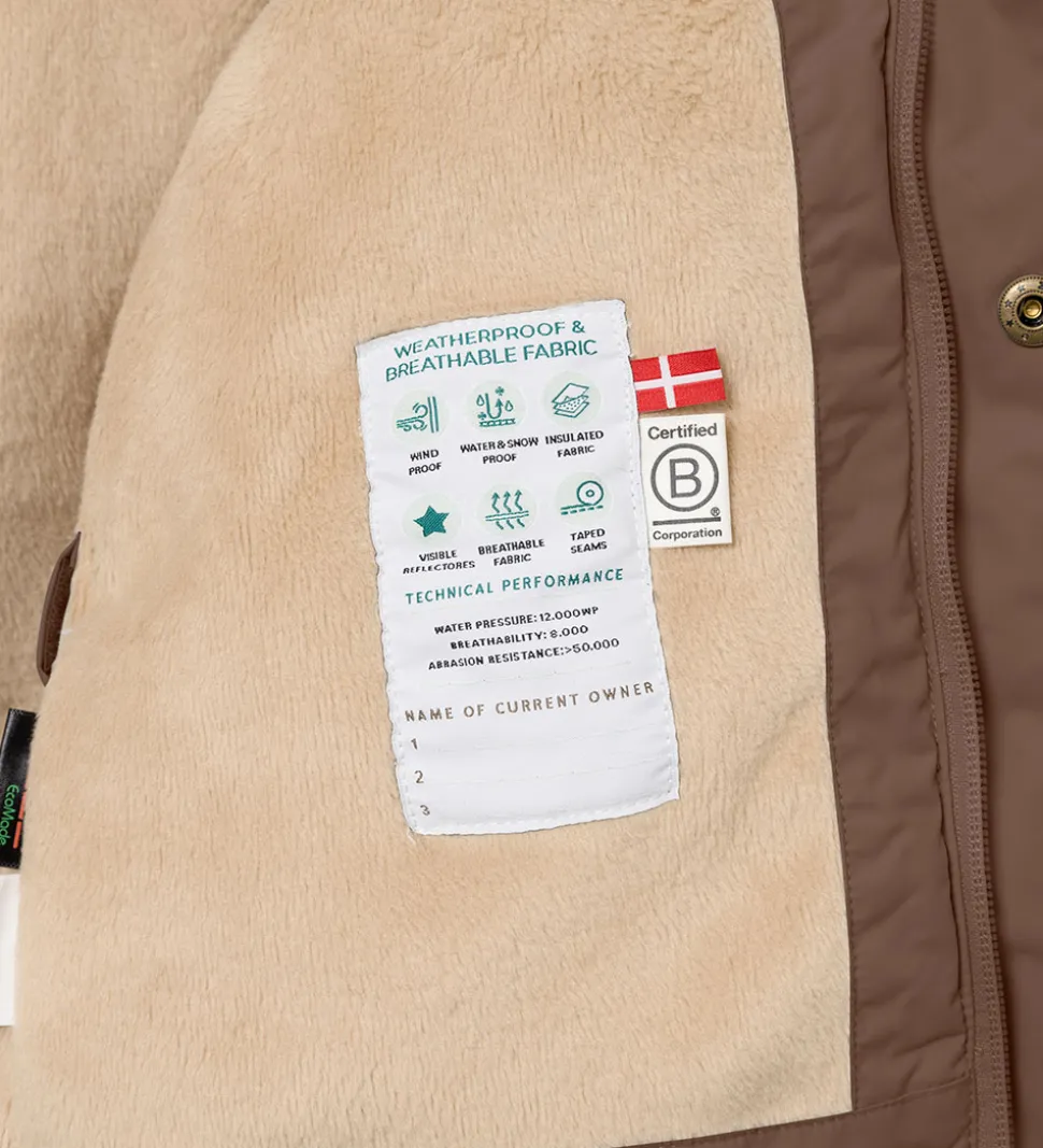 Fin Mini A Ture vinterjakke i kastanjebrun. Vinterjakken er med beige for.