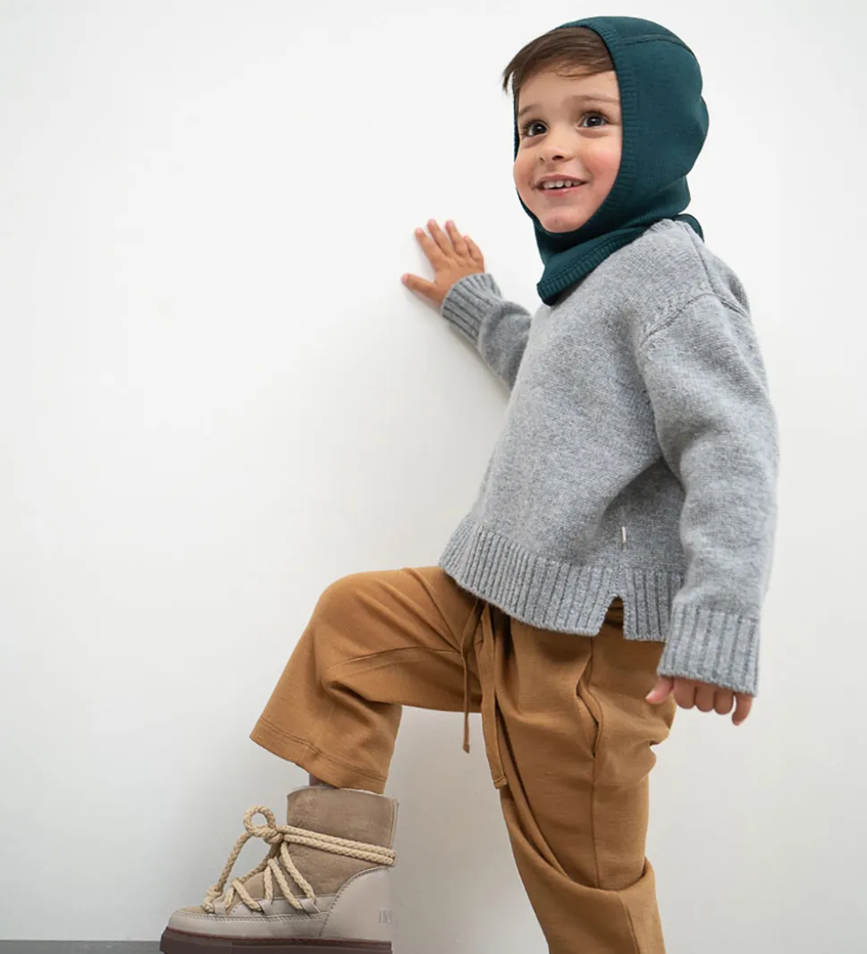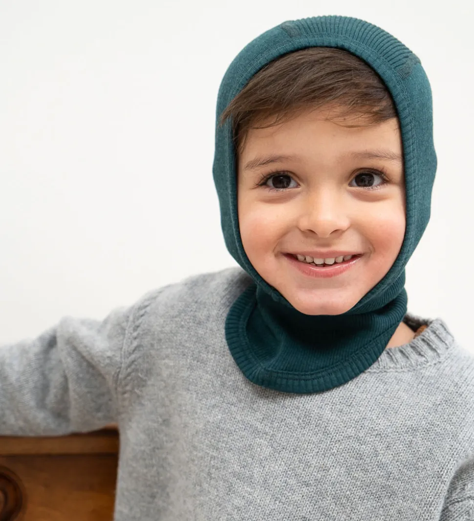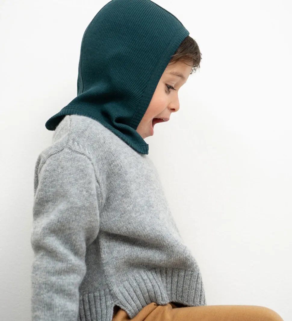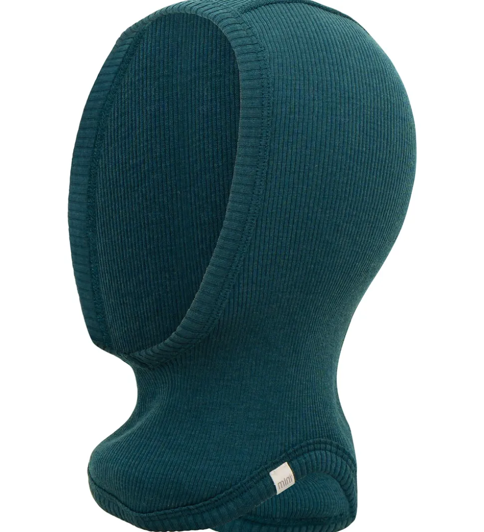Elegant Minimalisma elefanthue i en dyb petroleumsfarve med ribstruktur, og den er lavet af blødt merinould. Minimalisma elefanthuen har en rund hovedform med en split-effekt i bunden, som giver et godt fit, og den består af et enkelt lag.
