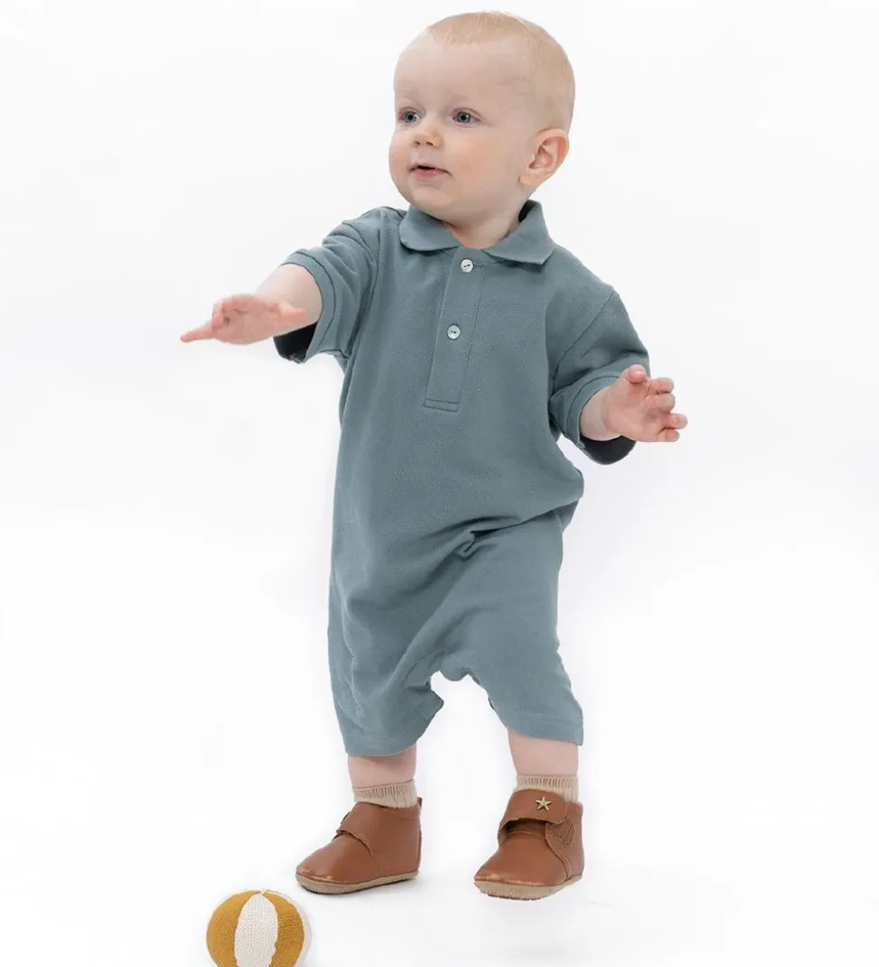Minimalisma sommerdragten har en klassisk krave i halsåbningen med en stolpelukning fortil, som lukkes med to perlemorsknapper. Dragten har korte ærmer med smalle ribkanter samt korte ben med skjulte trykknapper imellem. Sommerdragten er lavet i en lækker bomuldskvalitet.