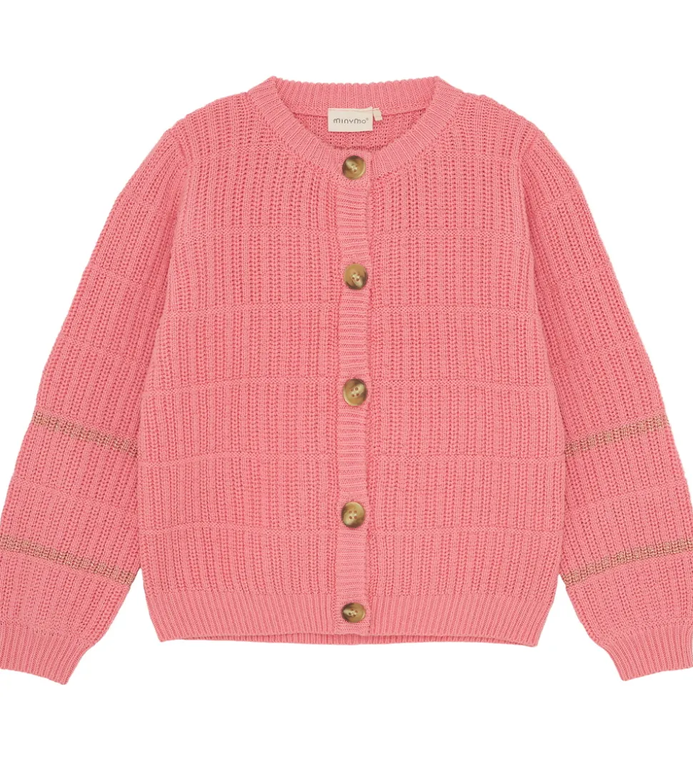 Charmerende Minymo cardigan i en blød, rosa farve.