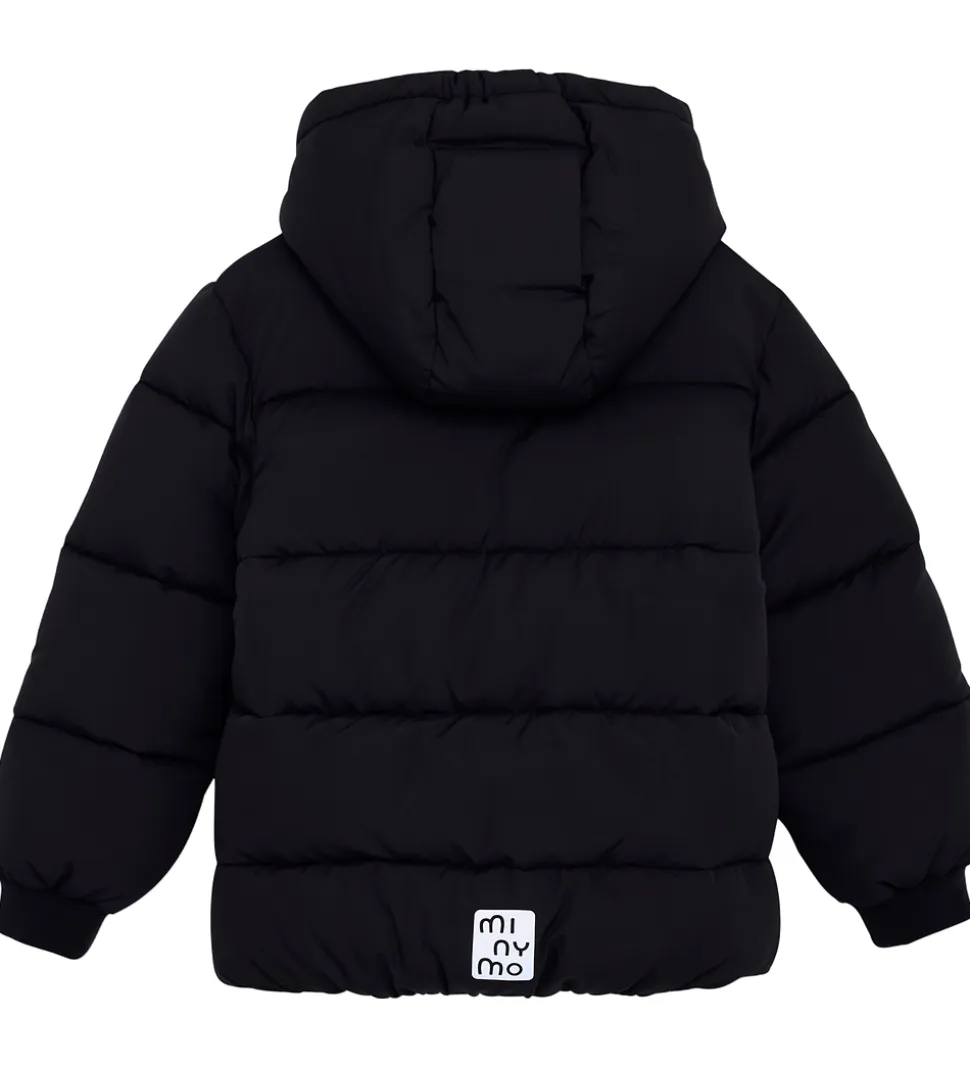 Lækker Minymo dynejakke i ensfarvet sort og med velplacerede refleks-logoprint.