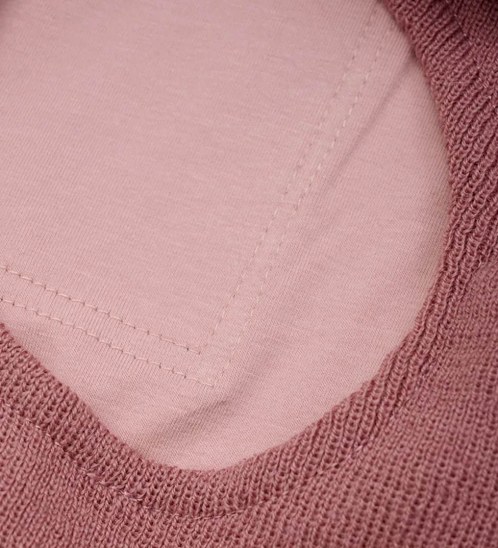 Lækker Minymo elefanthue i rosa strik med en lille, refleks-logoapplikation ved halsen fortil.
