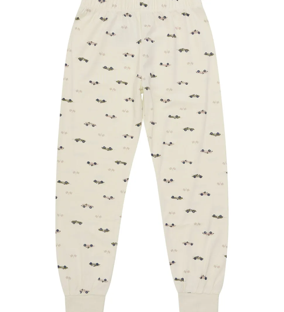 Smart Minymo nattøj, der består af en natbluse og et par natbukser i cremehvid med et fint alloverbilprint.