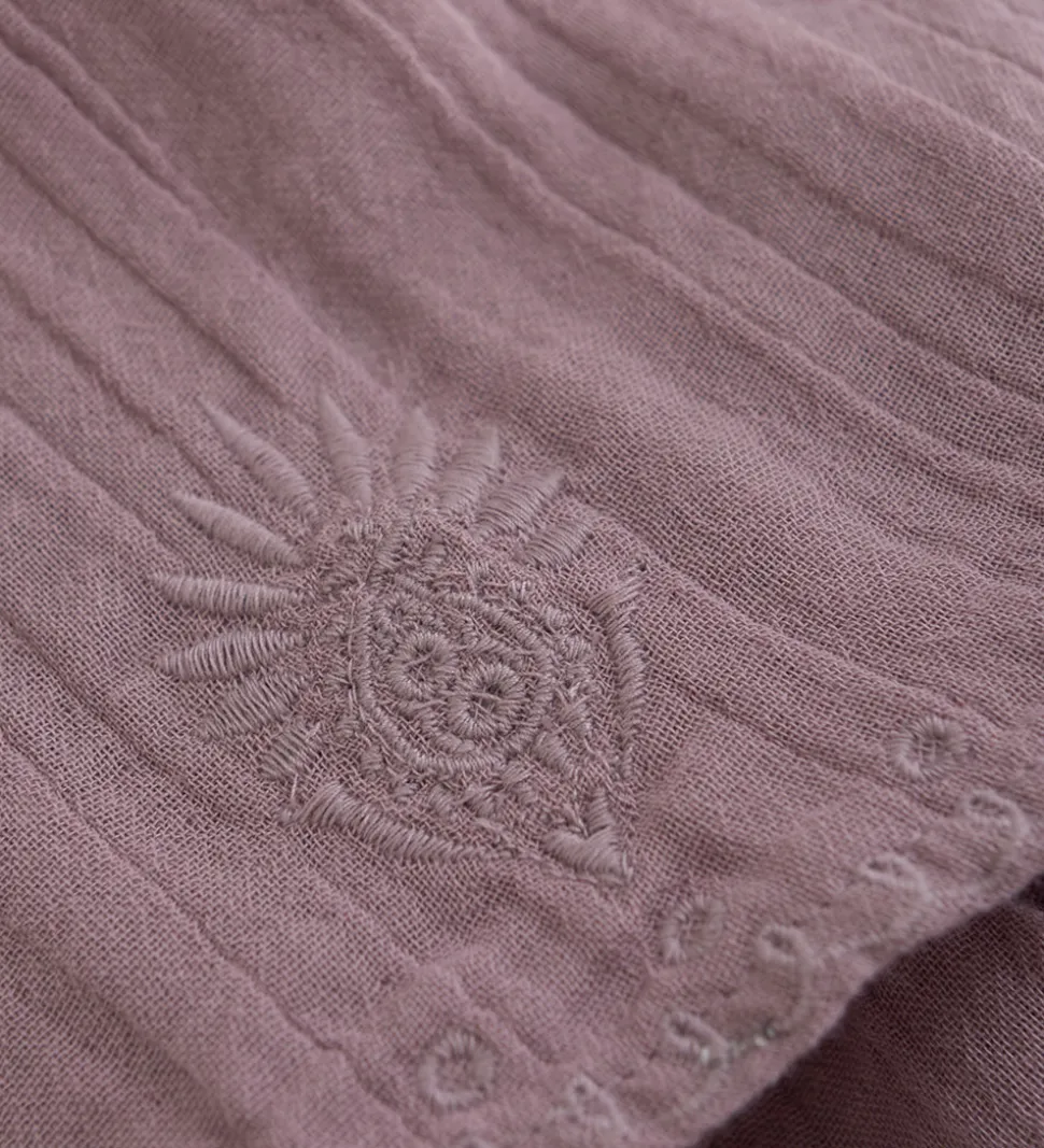 Fin Minymo nederdel i en blød lyslilla farve med dekorative broderede detaljer. Nederdelen har en elastisk talje, der sikrer god pasform og komfort. Perfekt til leg eller afslapning i sommerens varme. Nederdelen er lavet af fastvævet musselin.