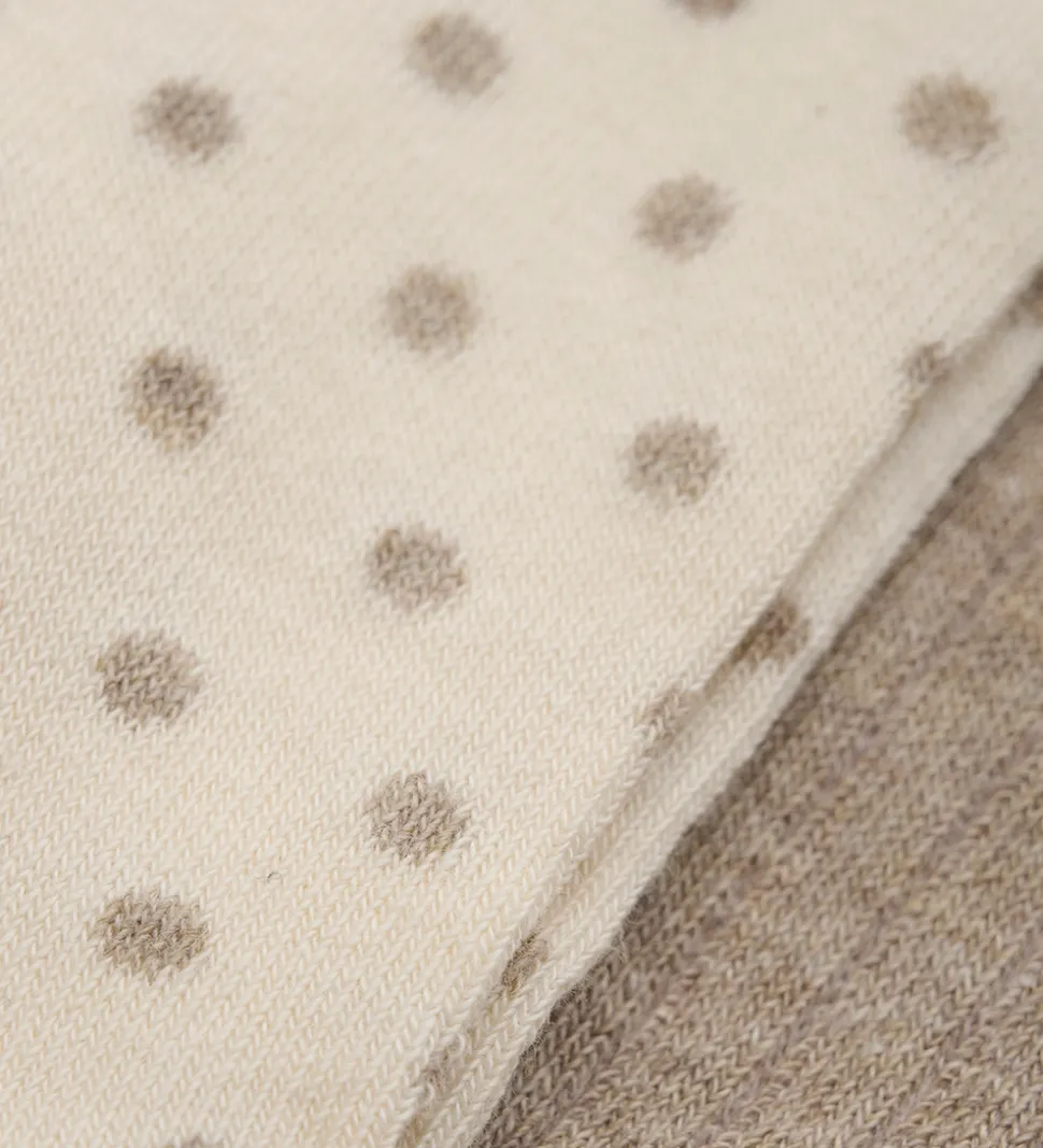 – Prikkede: 58% bomuld, 40% polyester + 2% elastan