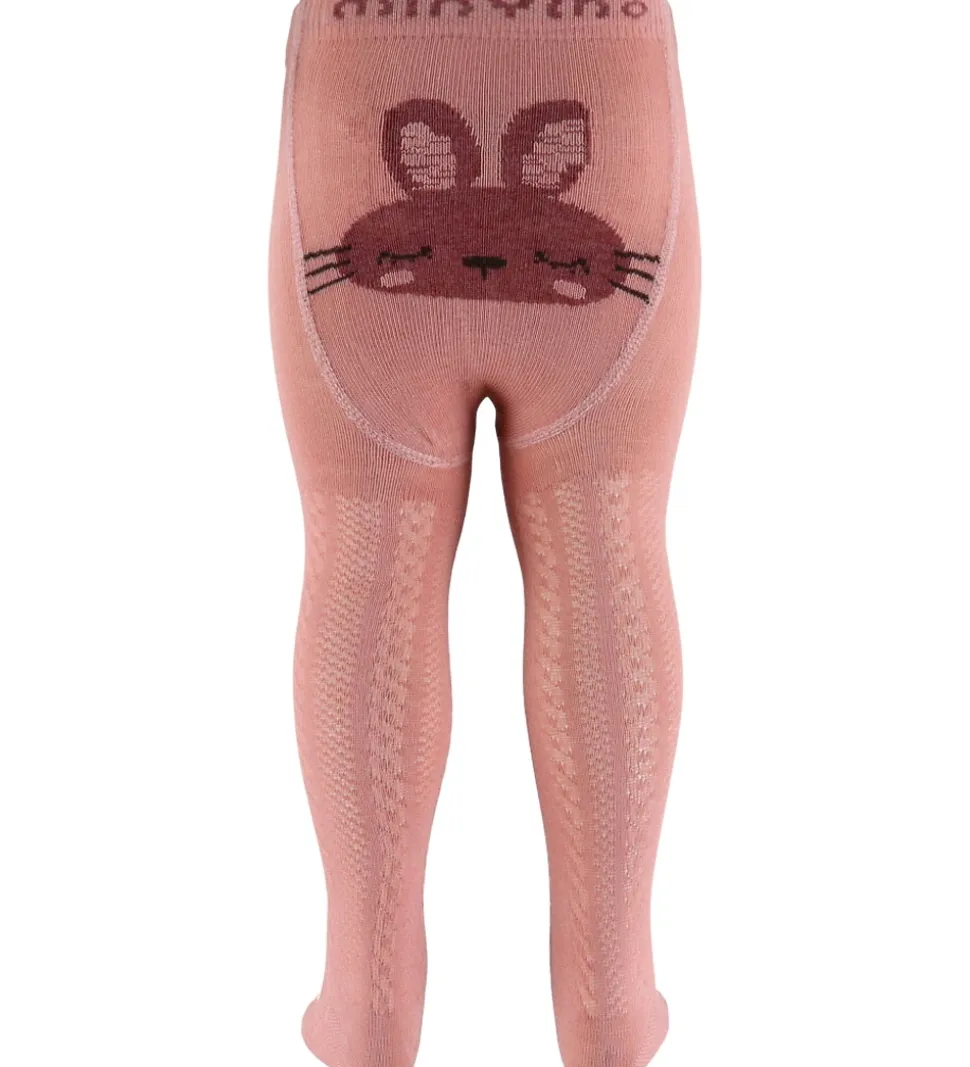 Søde Minymo strømpebukser i en flot rosa nuance med en flot struktur. Strømpebukserne har et charmerende kanin hoved på bagsiden i rosa nuancer, som giver et legende touch. De har en elastik i livet som sikrer god pasform og støtte.
