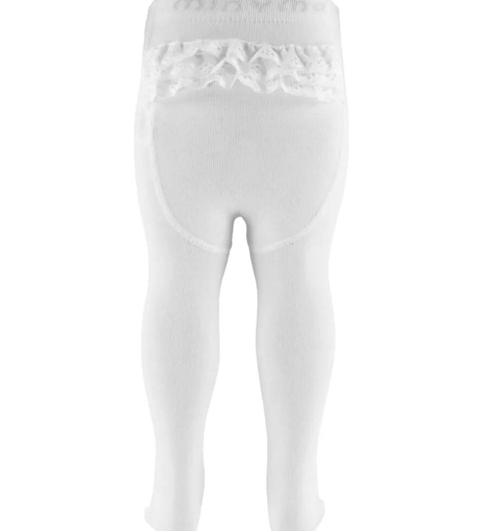 Søde Minymo strømpebukser i ensfarvet hvid, med tre fine blonder bagpå.