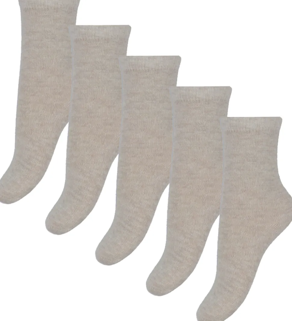 Praktiske Minymo strømper solgt i en 5-pak i meleret beige. Minymo strømperne har et langt skaft og en smal elastikkant øverst, der sikrer en god pasform.