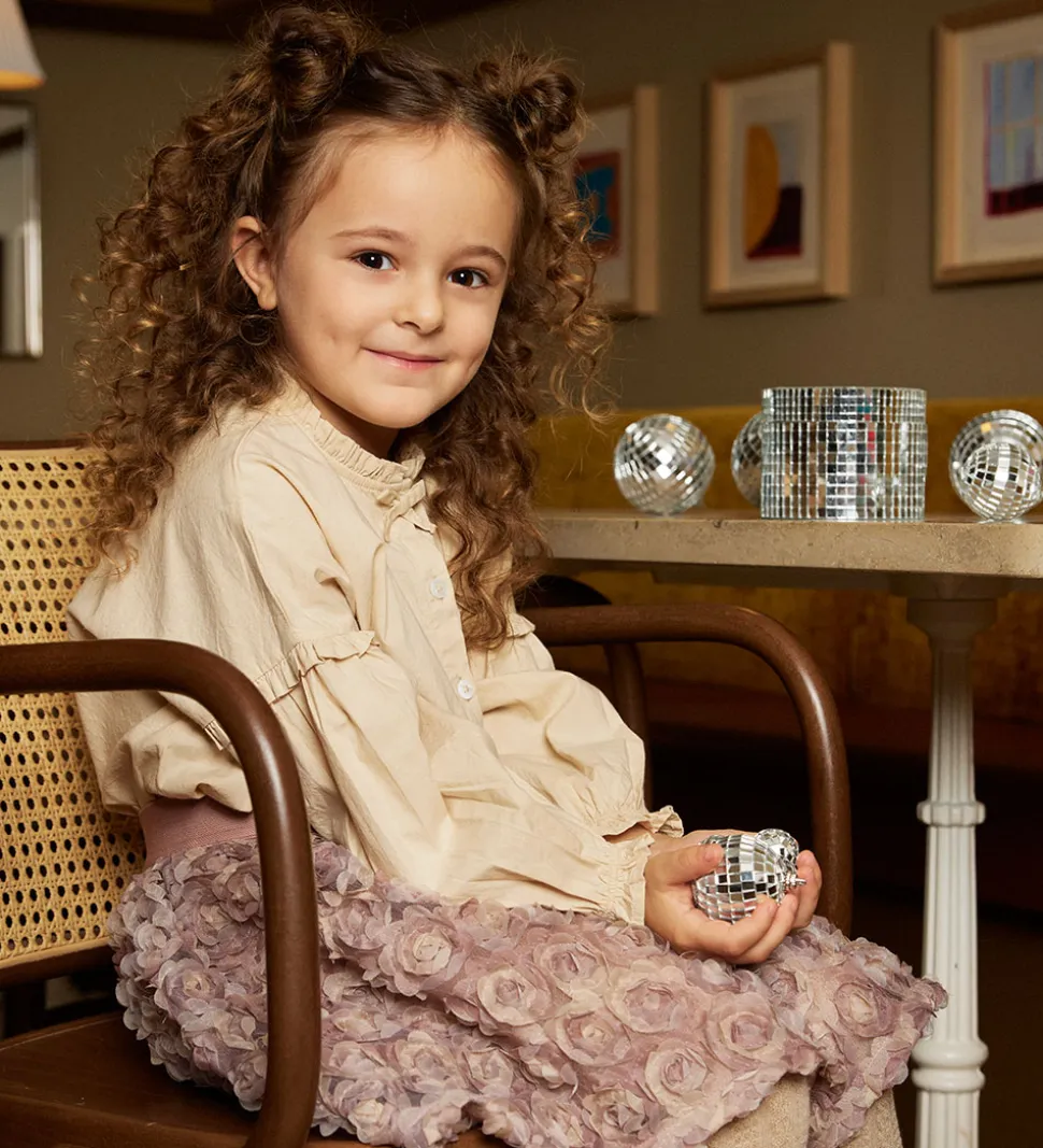 Flot tylnederdel fra Minymo i rosa og dekoreret med blomster lavet af tyl i rosa nuancer.