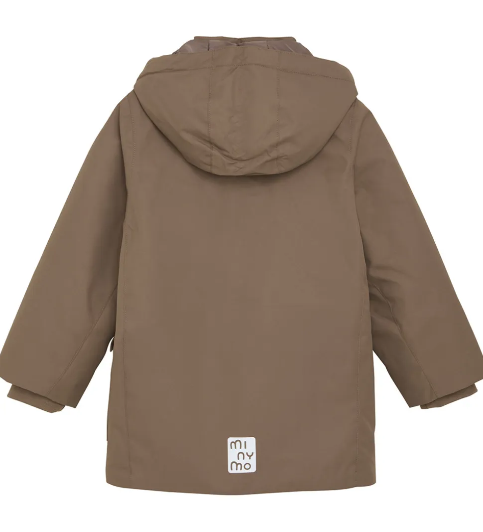 Lækker Minymo vinterjakke i brun med praktiske reflekslogoer.