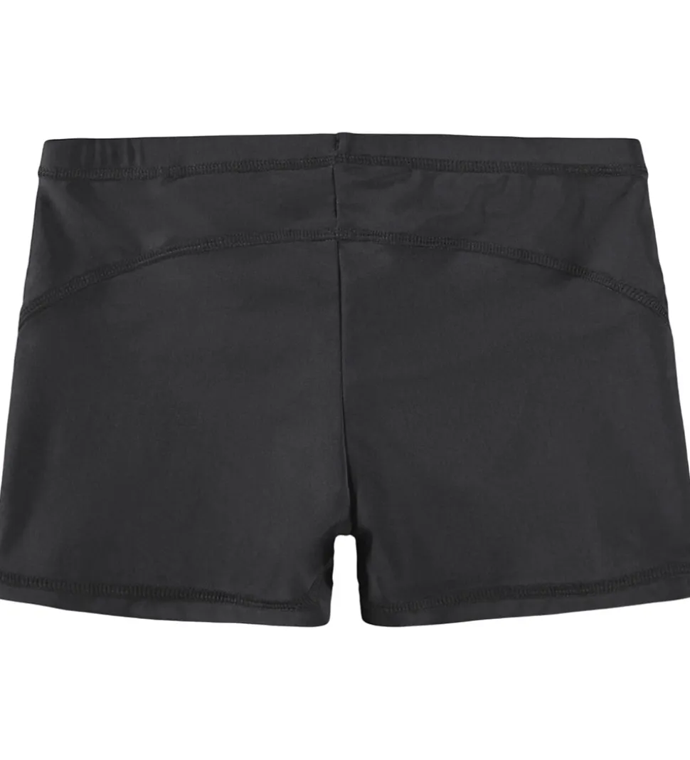 Stilfulde Molo badebukser i sort med et enkelt, hvidt og gult logo print på det ene ben. Molo badebukserne har elastik i livet, som kan justeres med snører indvendigt. Badebukserne har et praktisk UV-filter på 50+.