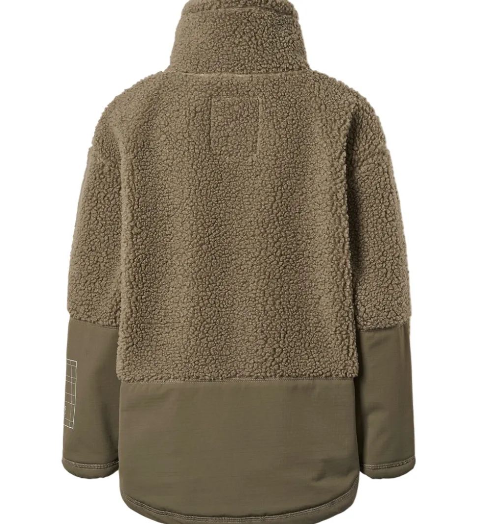 Flot Molo fleecejakke i støvet armygrøn med en struktur af teddyfleece. Fleecejakken har kontrastpaneler i en glat tekstur, som giver et moderne udtryk.