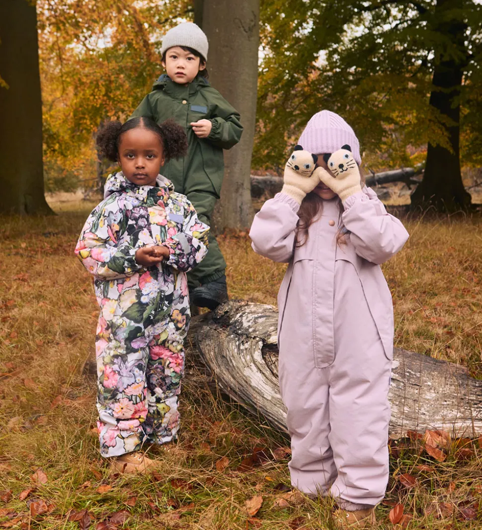 Flyverdragten er vatteret og foret med fleece i kraven, hagebeskytteren, armåbningerne, ryggen, numsen og knæene, mens resten af flyverdragten har et glatvævet for.