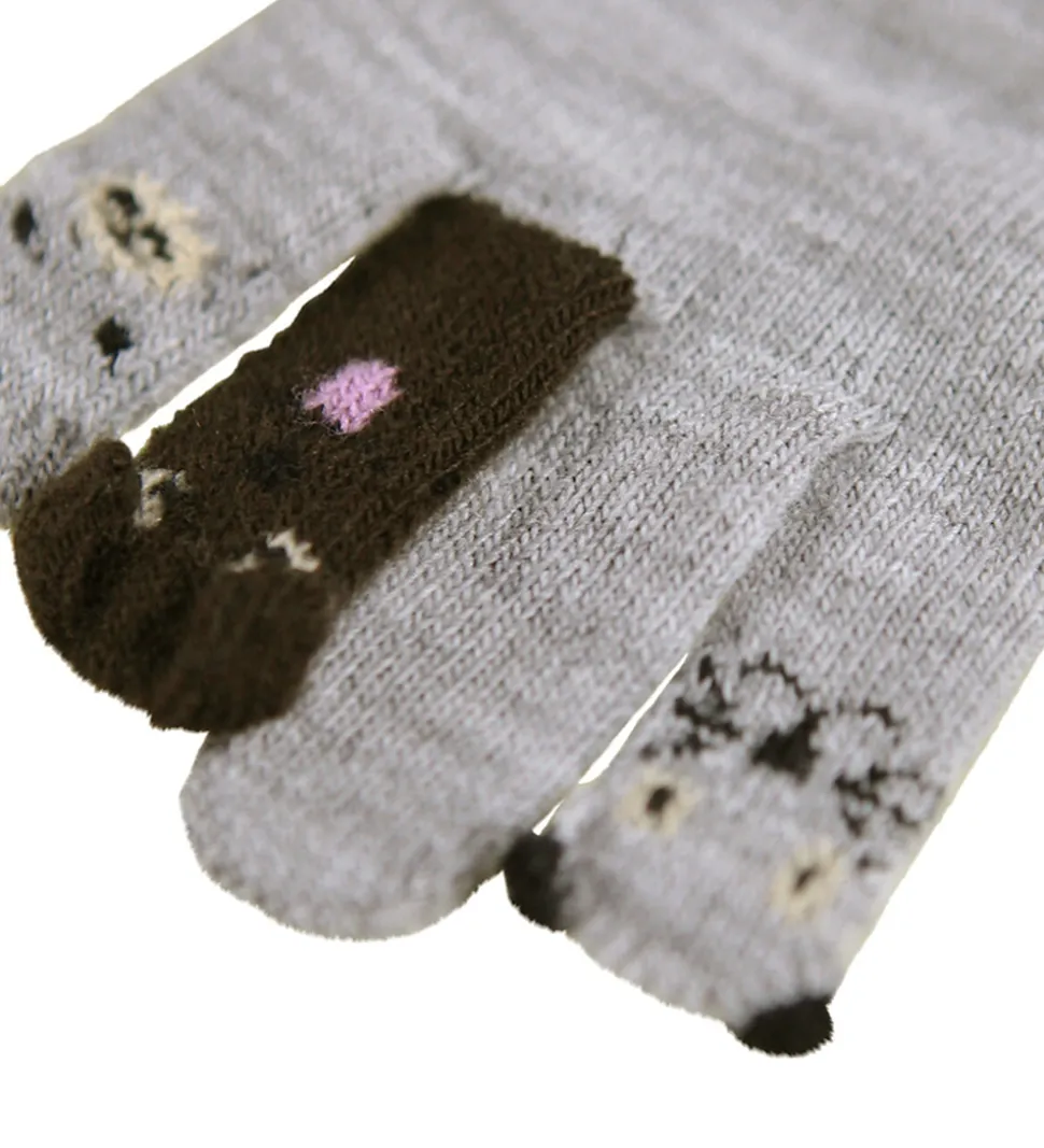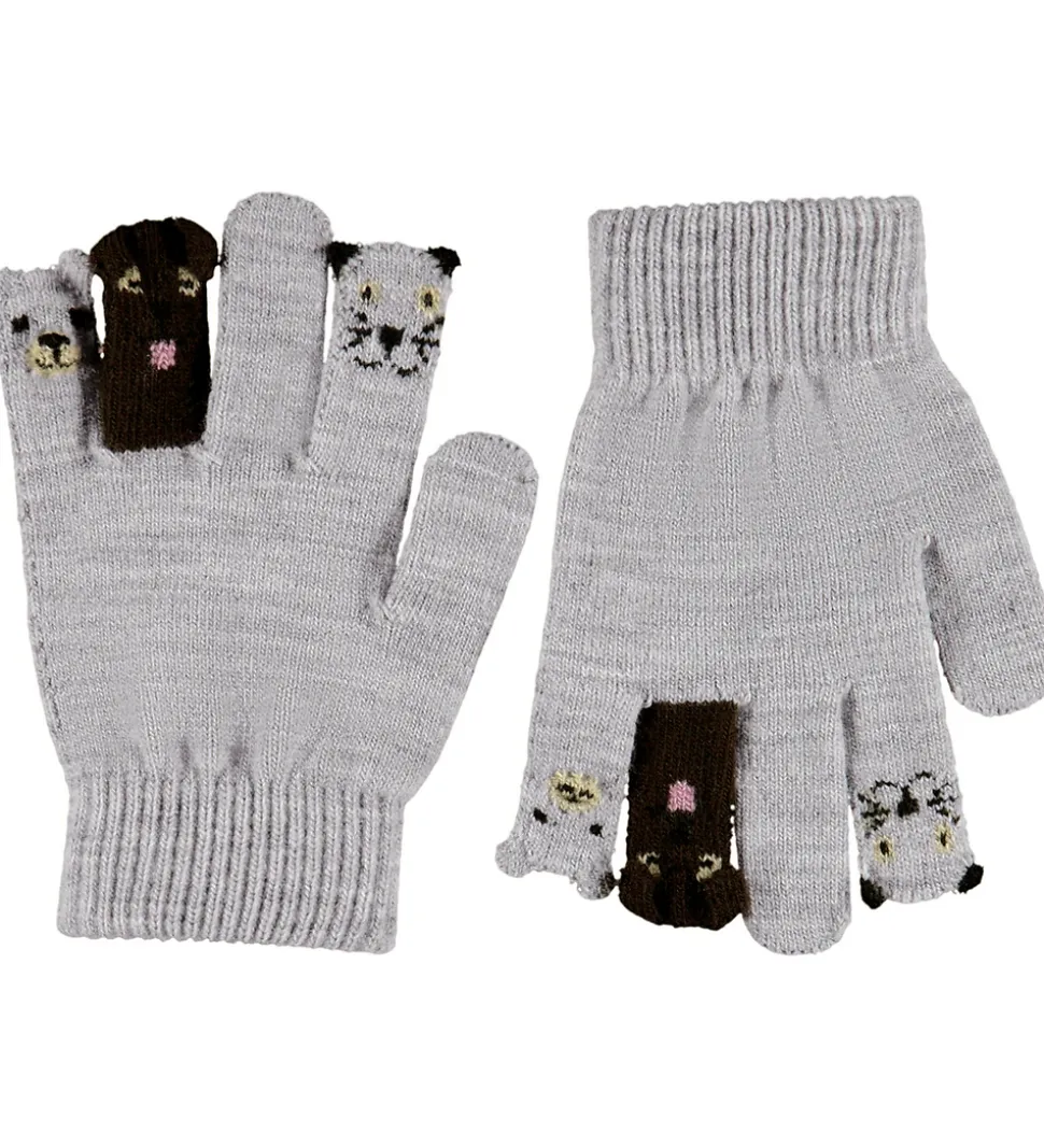 Flotte Molo luffer i handsker grå og med et dyredesign på fingerspidserne.