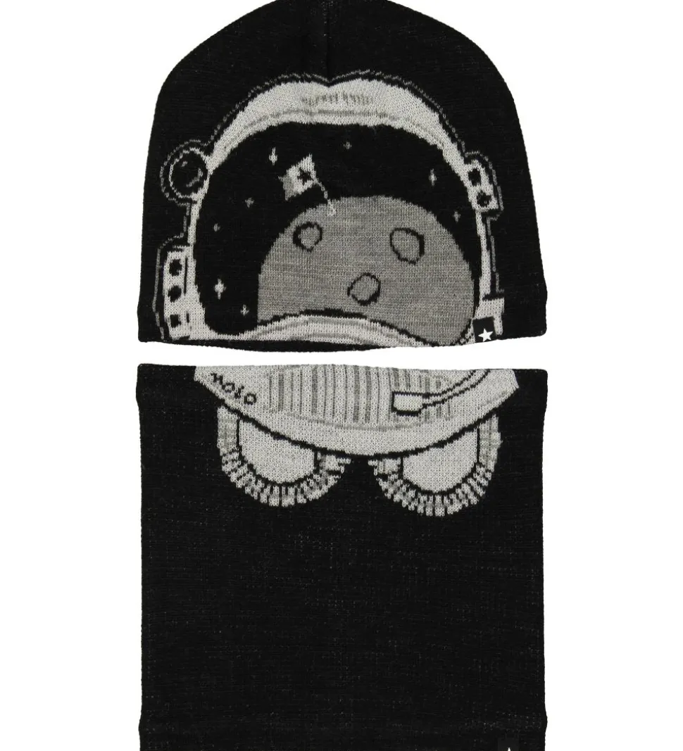 Sejt Molo sæt bestående af hue og tube i sort med en grå rumhjelm.