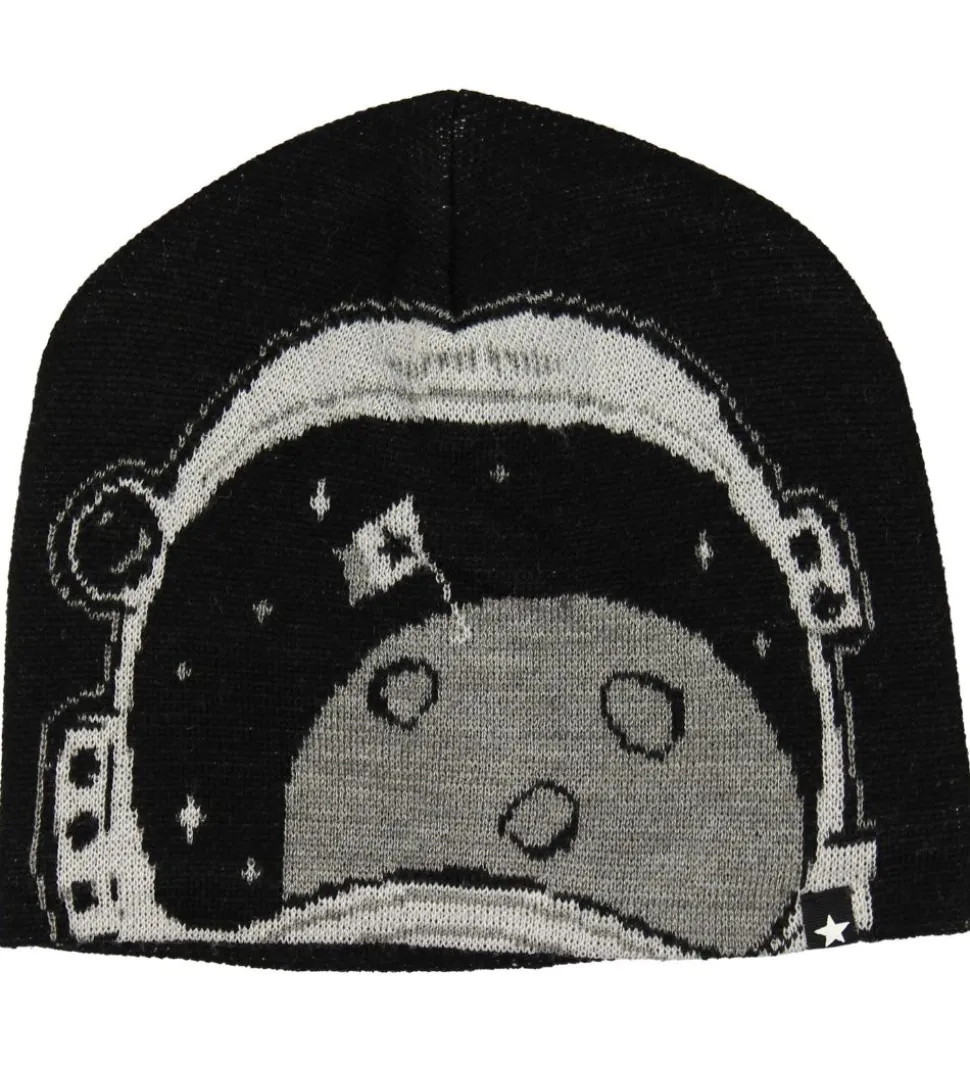 Molo huen har et rundt hovedform med et syningskryds på toppen og består af to lag. Tuben har en klassisk firkantet form. Når barnet har sættet på, ser det ud som om, det har en rumhjelm på. Indvendigter er der blødt fleece.