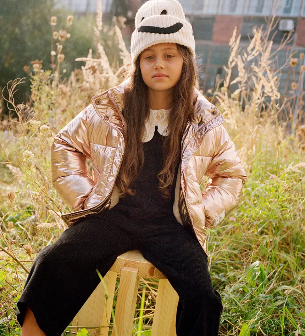 Molo huen har en rund hovedform med syningskryds på toppen, og i åbningen er der et fint ombuk. Huen er i en kraftig, strikket kvalitet.