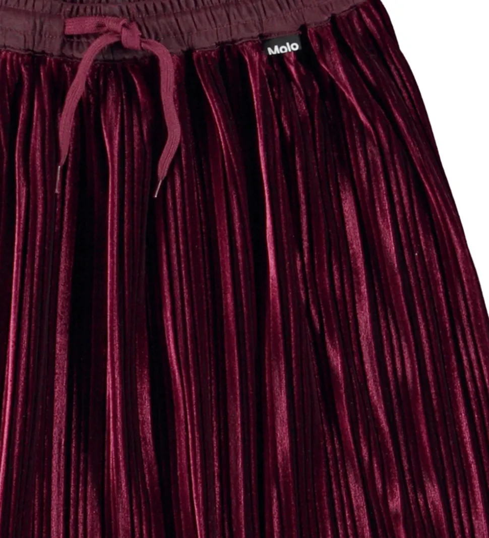 Elegante detaljer kendetegner denne nederdel fra Molo. Den har en flot, plisseret struktur og kommer i en dyb, rød farve, der giver et stilfuldt look. En elastisk talje sikrer en god pasform og komfort hele dagen.