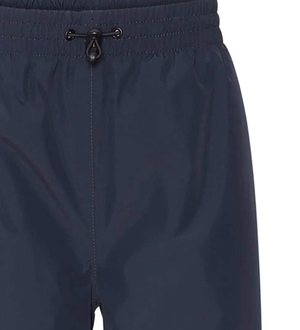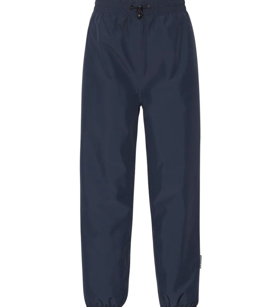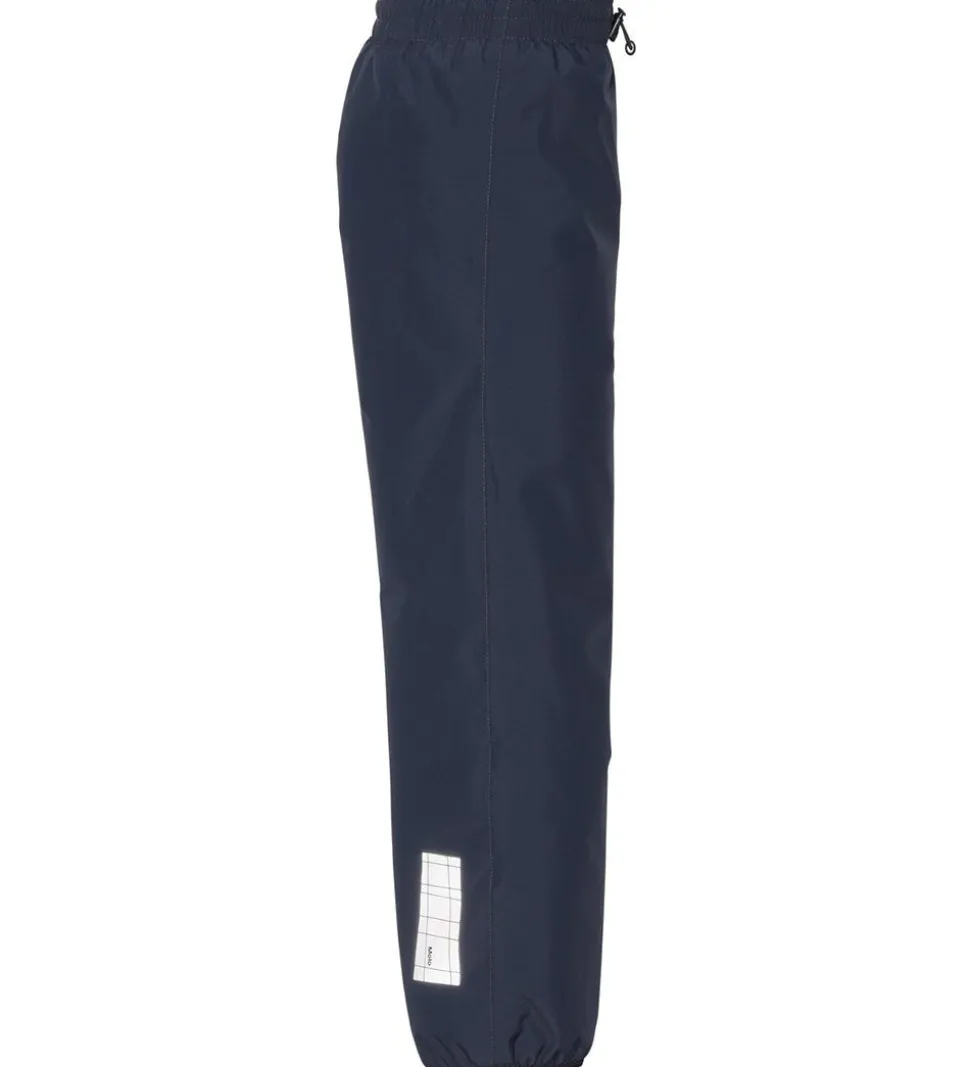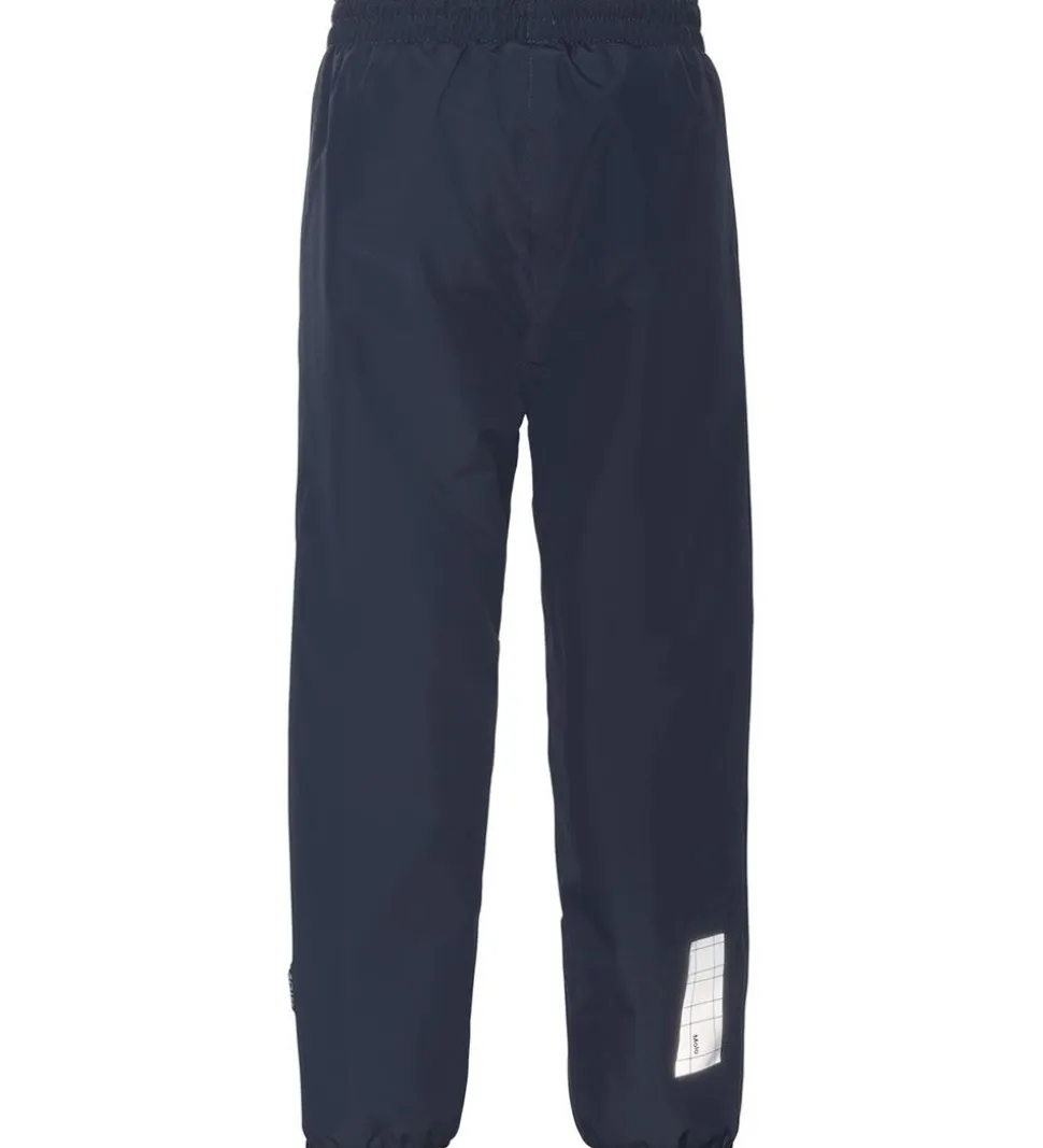 Dejlige Molo regnbukser i navyblå med en stor refleks nederst på højre bagben i form af et Molo logo.