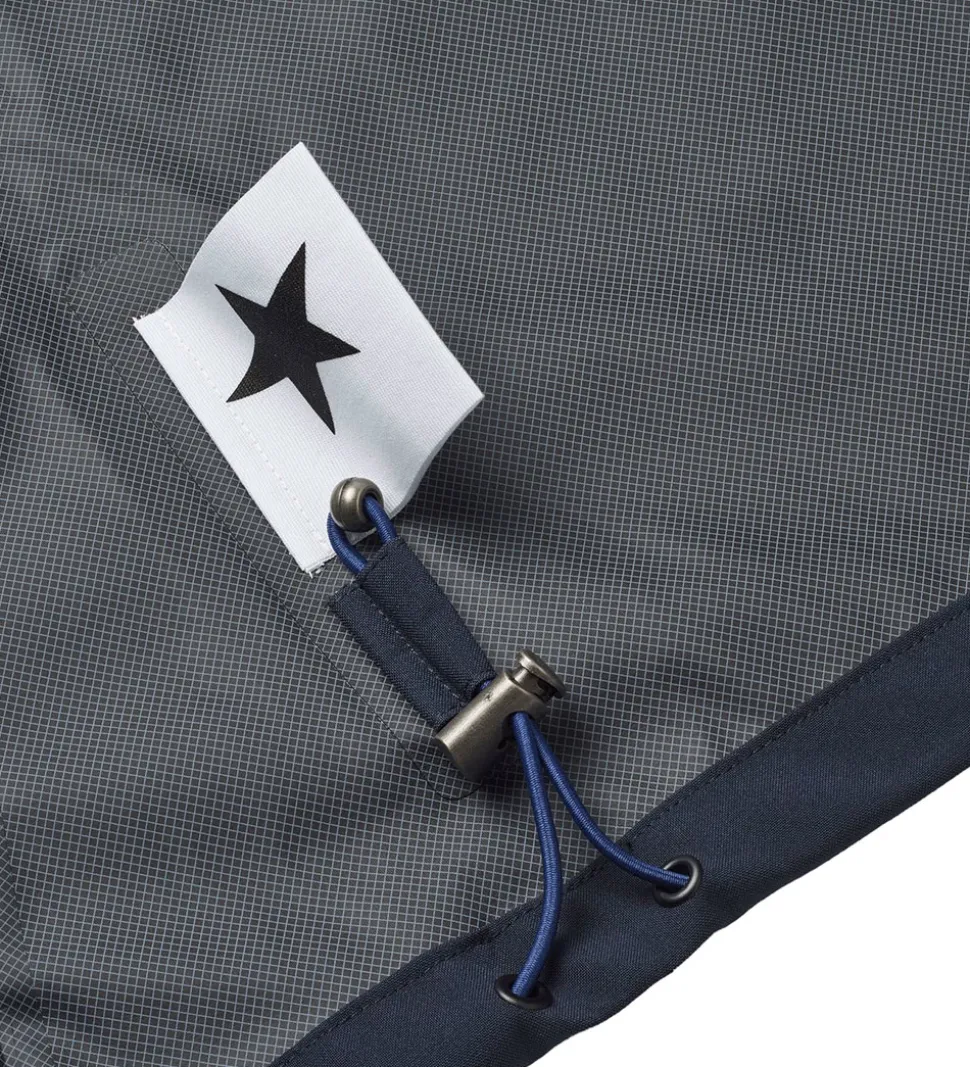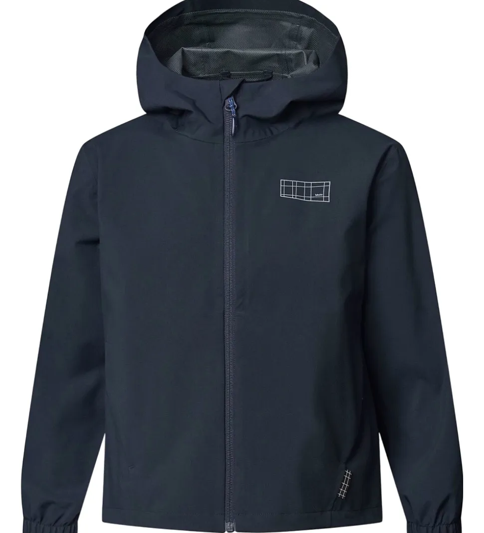 Fin Molo regnjakke af PE i mørkeblå og med et logorefleksprint på venstre bryst.