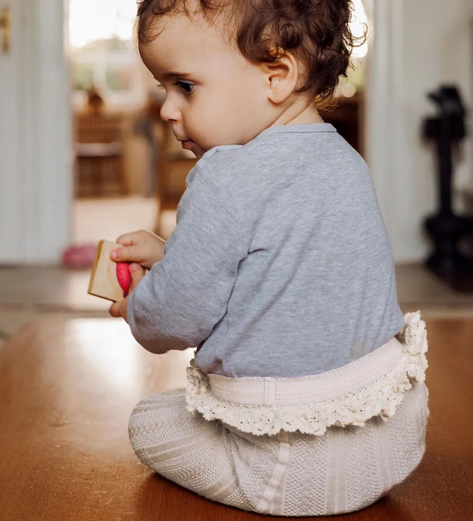 MP strømpebukserne har en elastikkant i åbningen, som sikrer en god pasform. I bunden af elastikkanten er der en flot blonde, og i taljeåbningen er der en smal blondekant. Strømpebukserne er i en lækker og strækbar kvalitet.