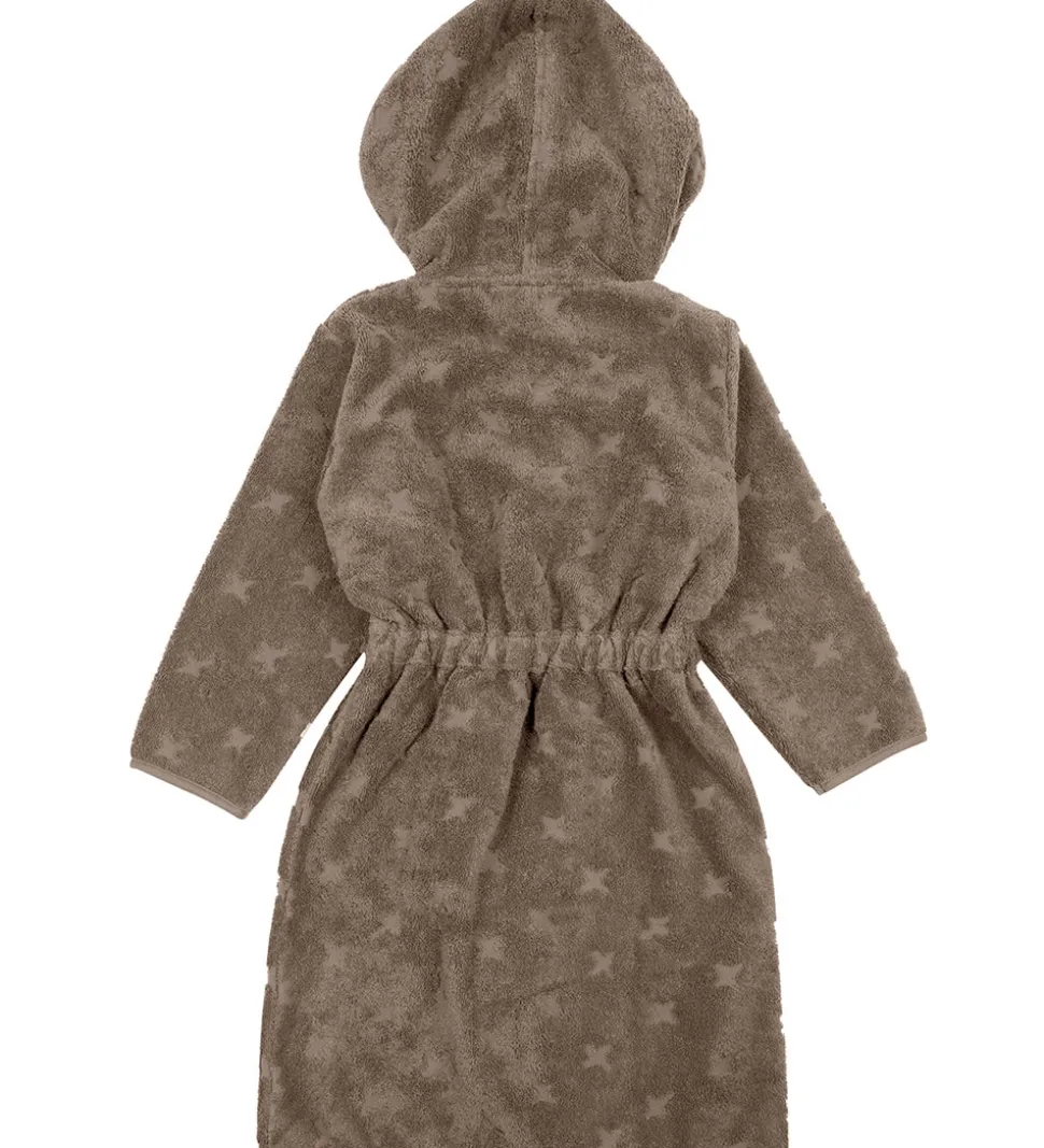 Flot Müsli badekåbe i støvet brun med et mønster af små, indprægede stjerner.