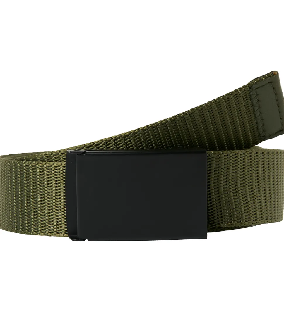 Praktisk Name It bælte i en flot, olivengrøn farve. Bæltet har et diskret, sort spænde, der giver et stilrent udtryk. Name It bæltet lukkes med et stort metalspænde som frit kan justeres, da der ikke er huller i bæltet.