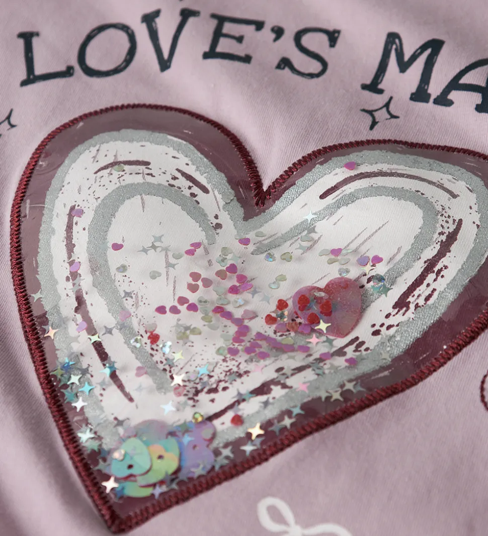 Blusen har et iøjnefaldende print på fronten med teksten “Love’s Magic” og et stort hjerte. Rund halsudskæring tilføjer et klassisk touch til designet. Blusen fra Name It udstråler et charmerende og moderne look.