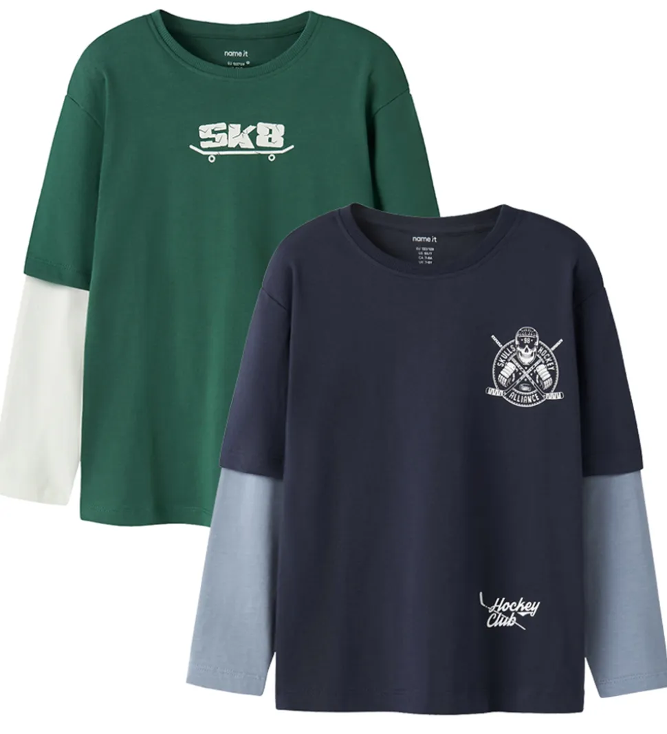 Smarte Name It bluser i en trendy lag-på-lag-stil med to varianter.