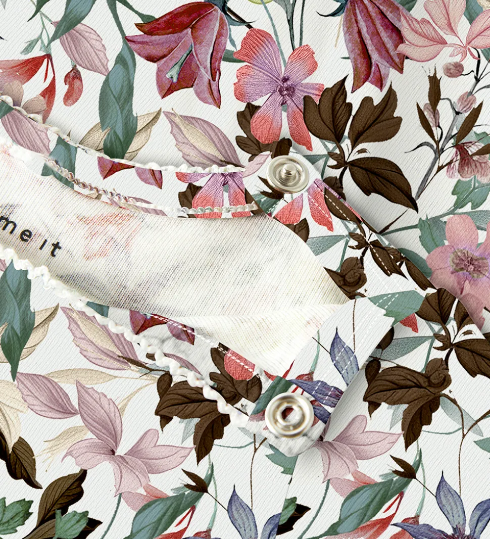 Smuk Name It body med lange ærmer og et farverigt blomsterprint i nuancer af rosa, grøn, lilla og brune toner.
