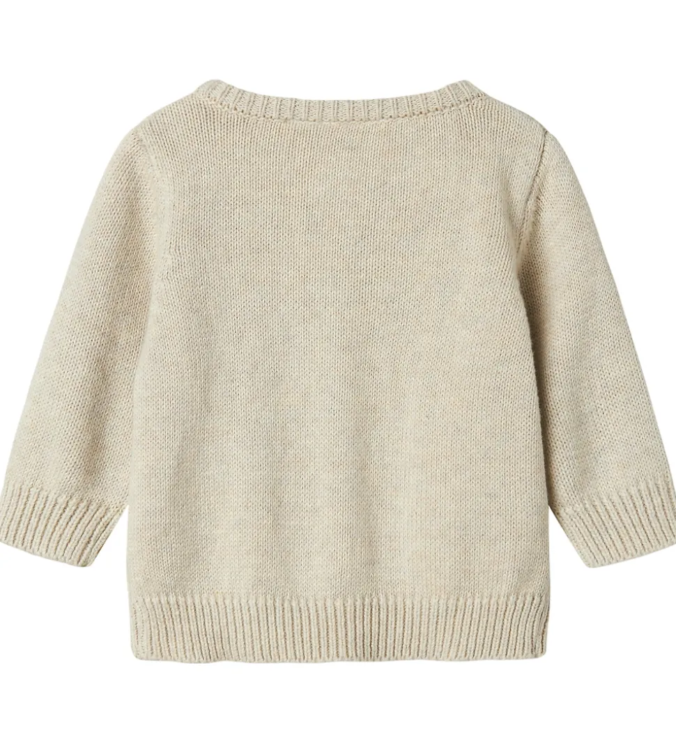 Cardiganen har en rund hals og lange ærmer med ribkanter. Name It cardiganen er udstyret med en række af knapper i træfarver, der løber langs fronten, hvilket giver et klassisk look. Den strikkede struktur tilfører ekstra varme og stil.