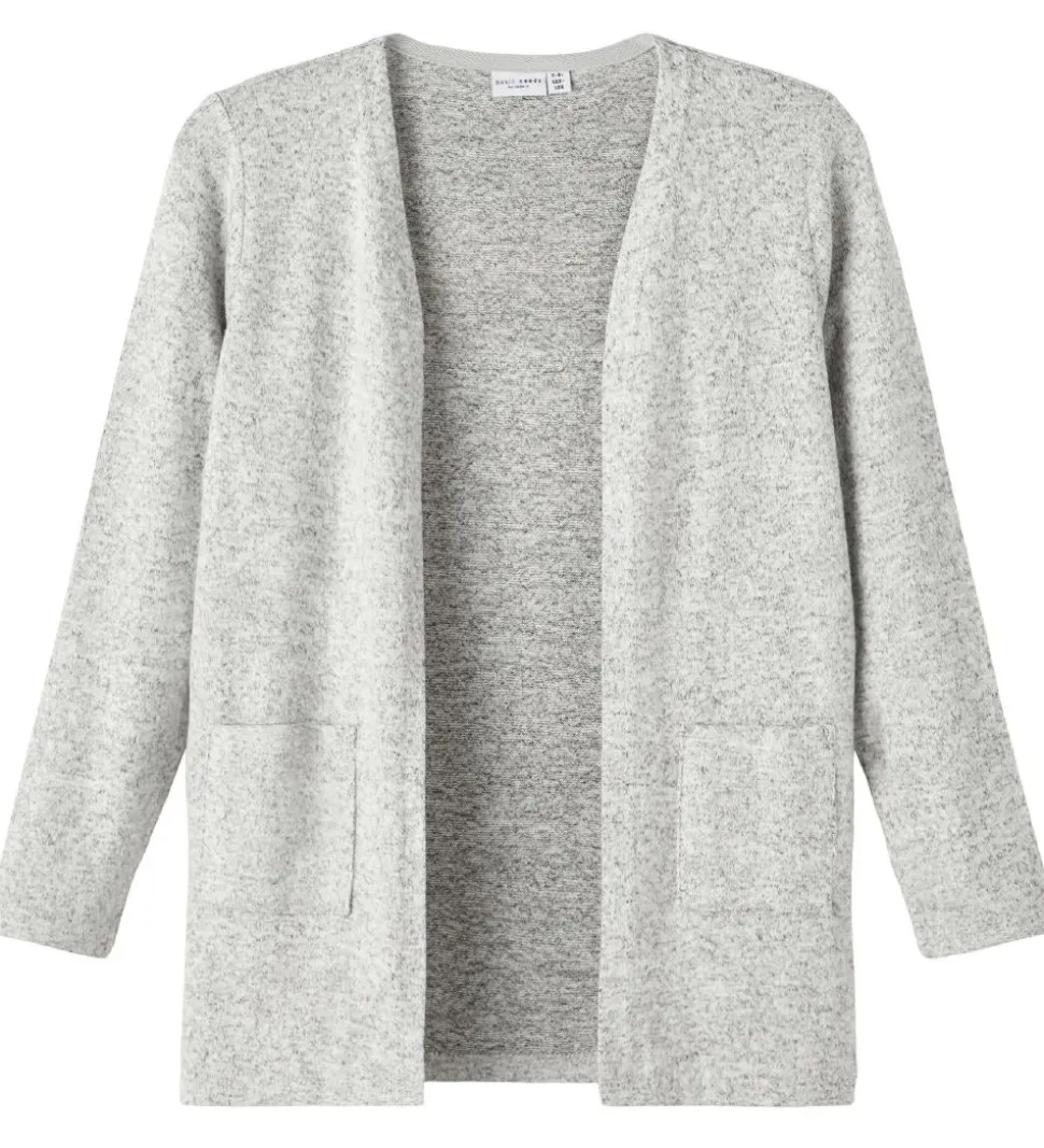 Lækker Name It cardigan i en letstrikket kvalitet i meleret grå.