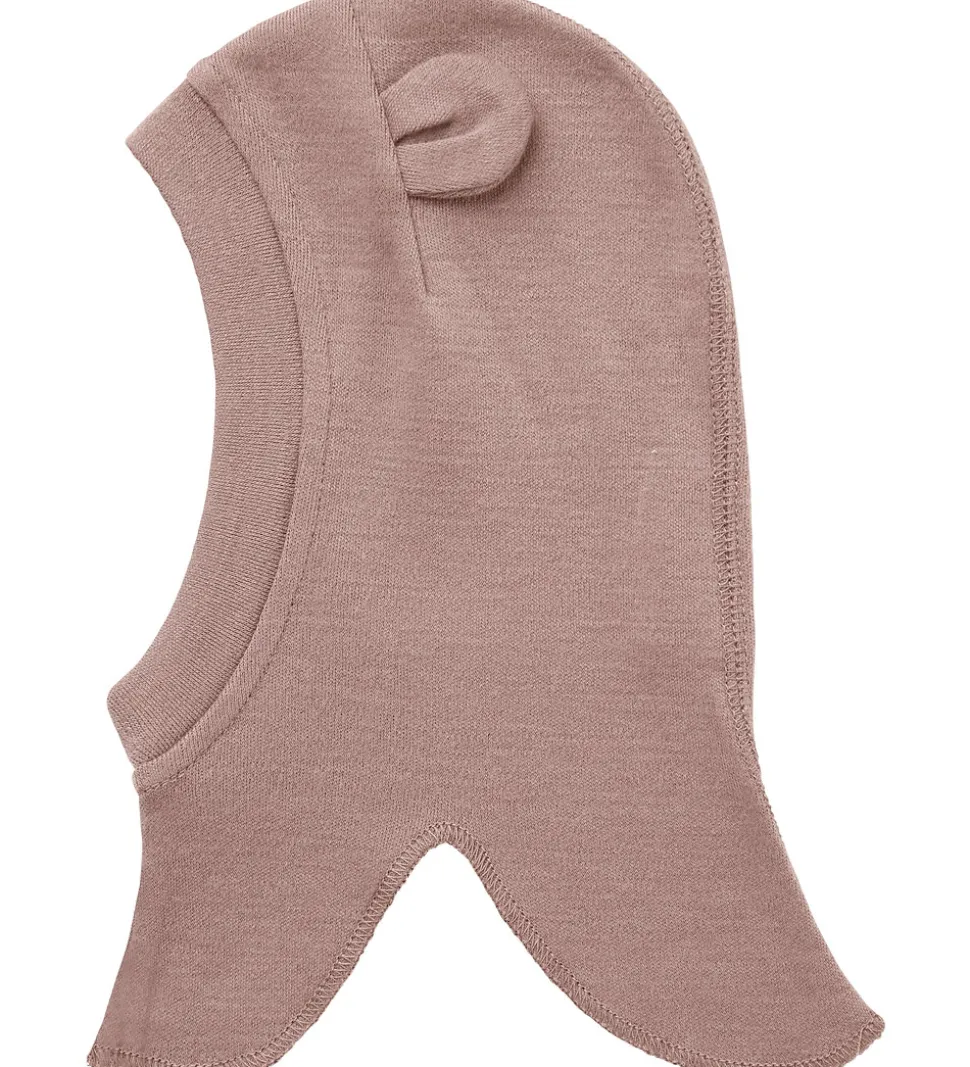 Elegant Name It elefanthue i ensfarvet rosa i en blød uldkvalitet. Elefanthuen har en rund hovedform med søde ører på toppen. I bnden har elefanthuen en split-effekt, der sikrer optimal dækning omkring halsen. Elefanthuen består af et enkelt lag.
