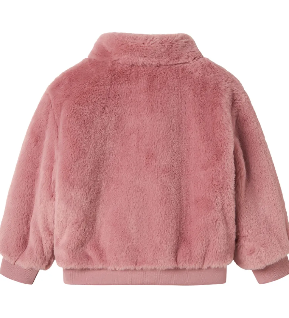 Blød Name It jakke af imiteret pels i en flot, lys, rosa farve.