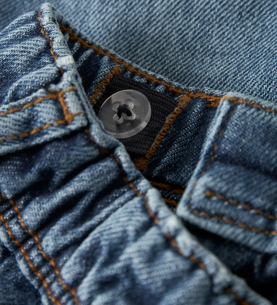 Name It jeansene har en elastisk, justerbar talje med praktiske bæltestropper. Foran ses der to rummelige lommer samt en møntlomme og fine synlige syninger. Der er også to baglommer, hvilket sikrer ekstra opbevaringsplads. Jeansene lukkes med en trykknap.