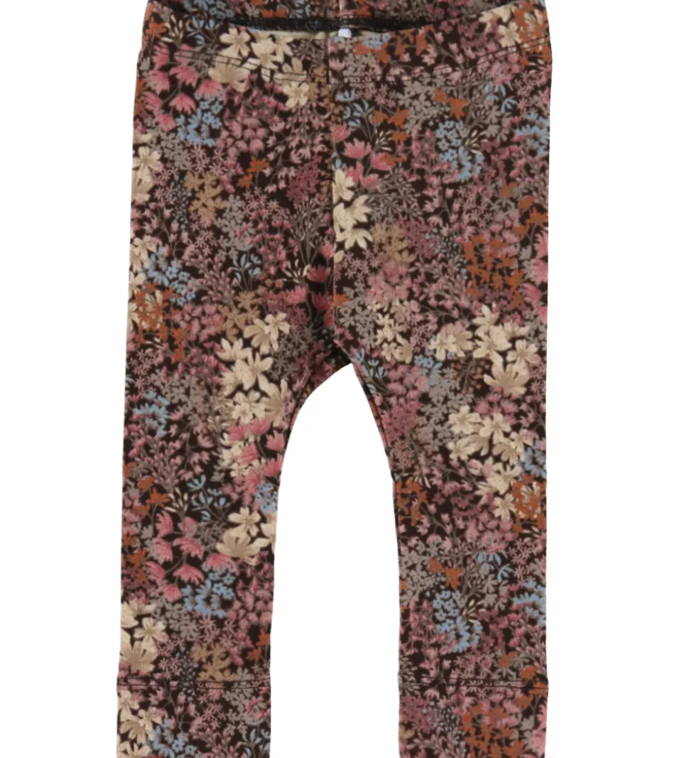 Smukke Name It leggings med et detaljeret blomsterprint i nuancer af brun, rosa, creme og blå. Name It leggings har en elastisk talje, der hjælper med en behagelig pasform.