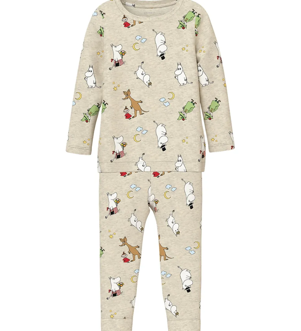 Natblusen er med lange ærmer, mens natbukserne har en elastisk talje, som giver en god pasform. Name It sættet er prydet med et charmerende Mumi-print, der tilføjer et legende touch til hver drøm.