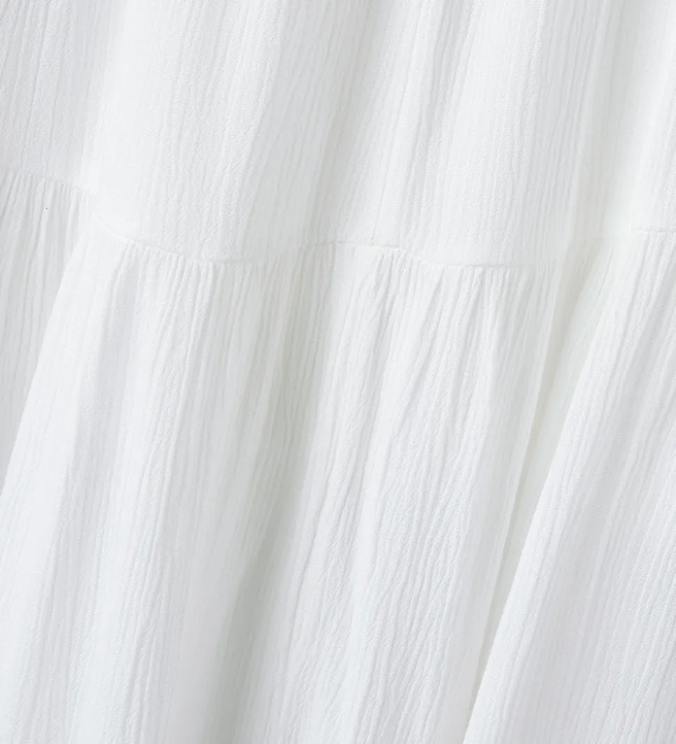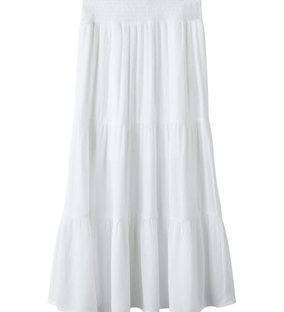 Elegant Name It nederdel i klassisk hvid. Nederdelen har en skøn, lagdelt struktur, der giver et flot fald. Name It nederdelen har en behagelig, elastisk talje, som sikrer en tilpasset pasform.