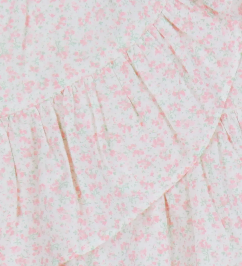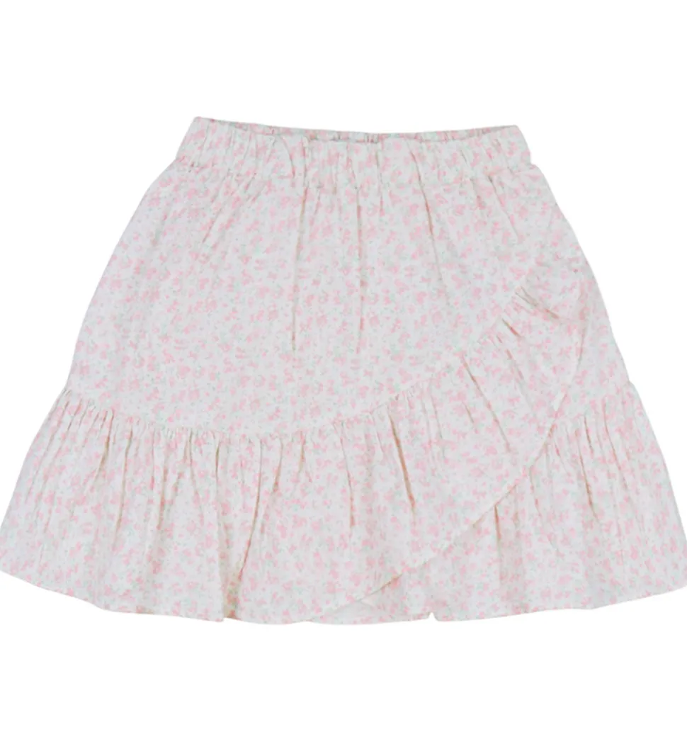 Skøn Name It nederdel i hvid med et fint, lyserødt blomstermønster. Nederdelen fra Name It har en elastisk talje og et karakteristisk slå-om-design med flæsekant forneden. Kombinationen af mønster og struktur giver et let og luftigt udtryk.