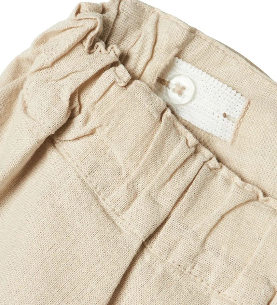 Stilfulde Name It shorts i en lys, beige farve, der præsenterer et tidløst design. Shortsene har en behagelig, elastisk talje med et integreret bælte, der tilføjer et moderne touch.