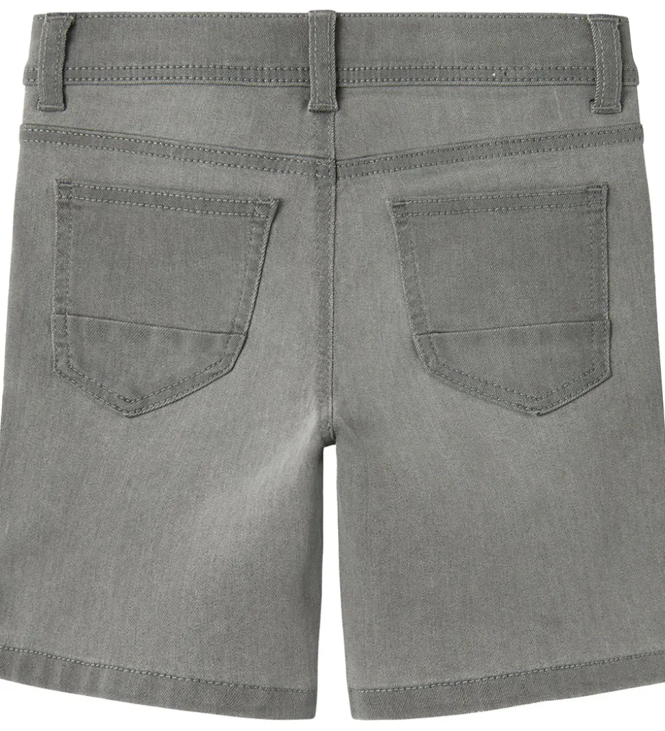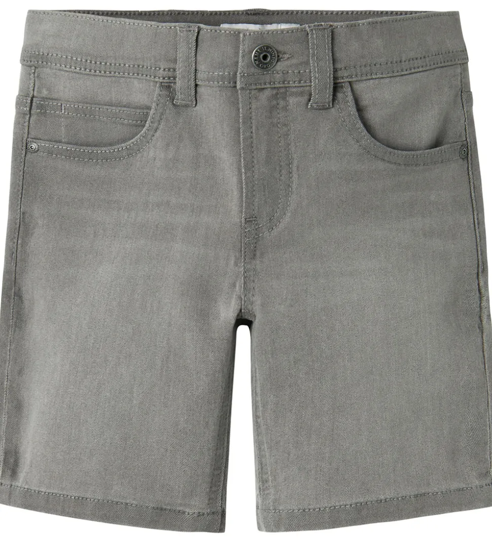 Flotte Name It shorts i en stilren, lysegrå denim med en indvendigt, justerbar elastikkant. Name It shortsene har et klassisk design med lommer foran og bagpå samt en praktisk lynlås- og hægtelukning.