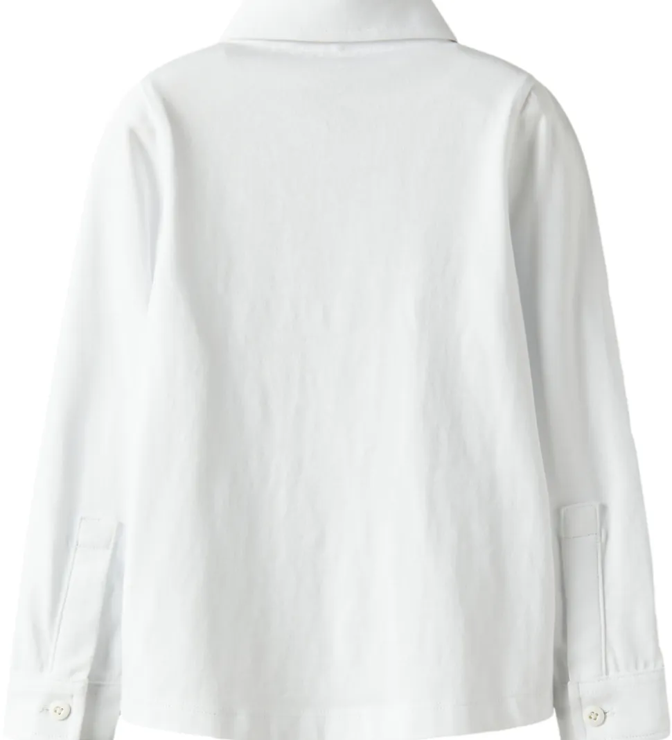 Klassisk Name It skjorte i ren hvid med lange ærmer og en enkelt brystlomme. Skjorten har en traditionel krave og lukkes med knapper foran. Name It skjorten er enkel i designet, hvilket gør den tidløs og passende til mange anledninger.