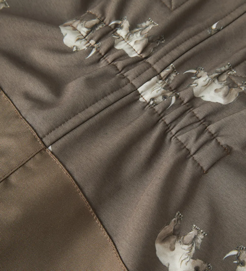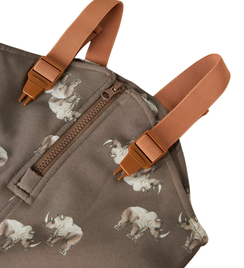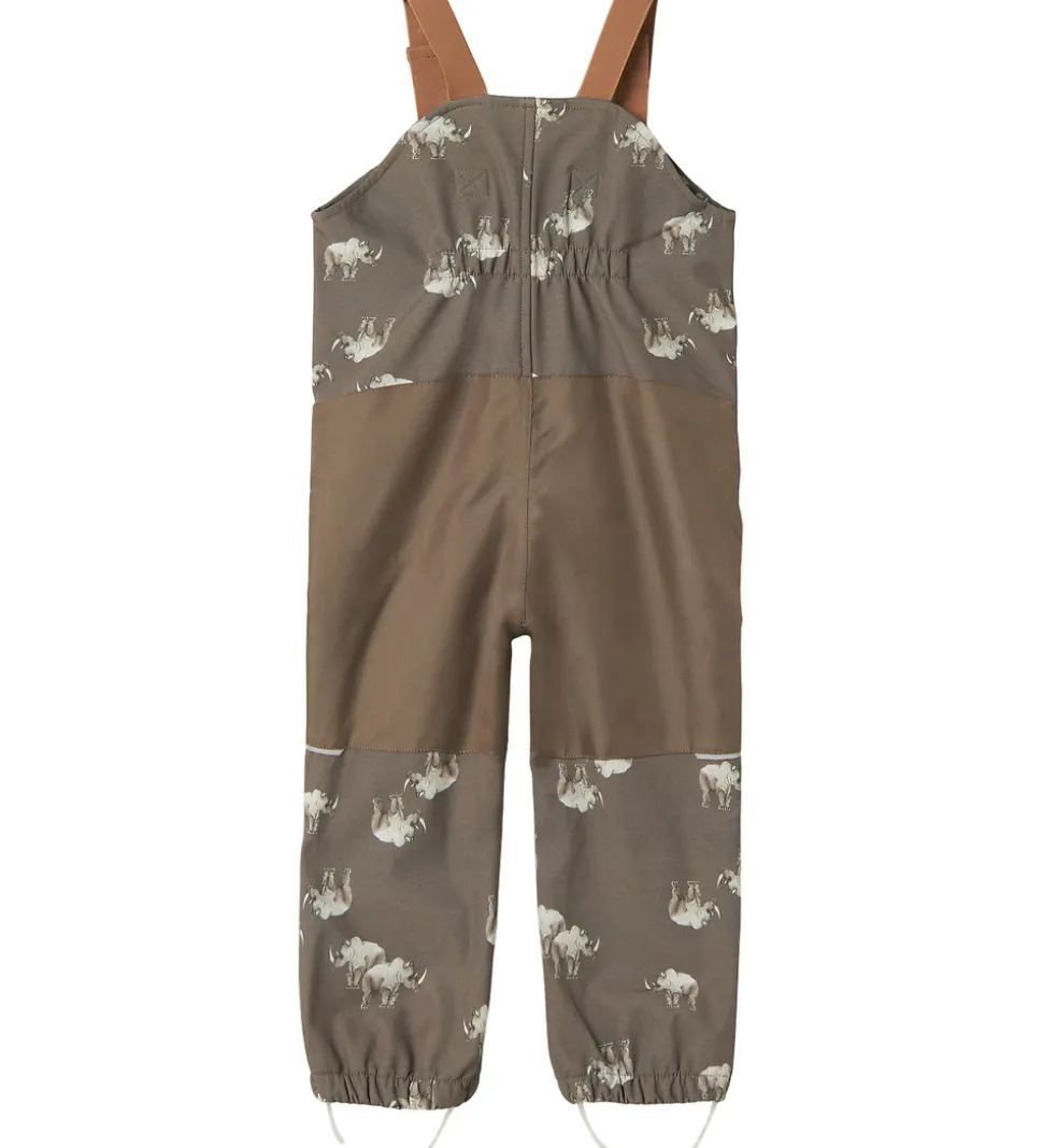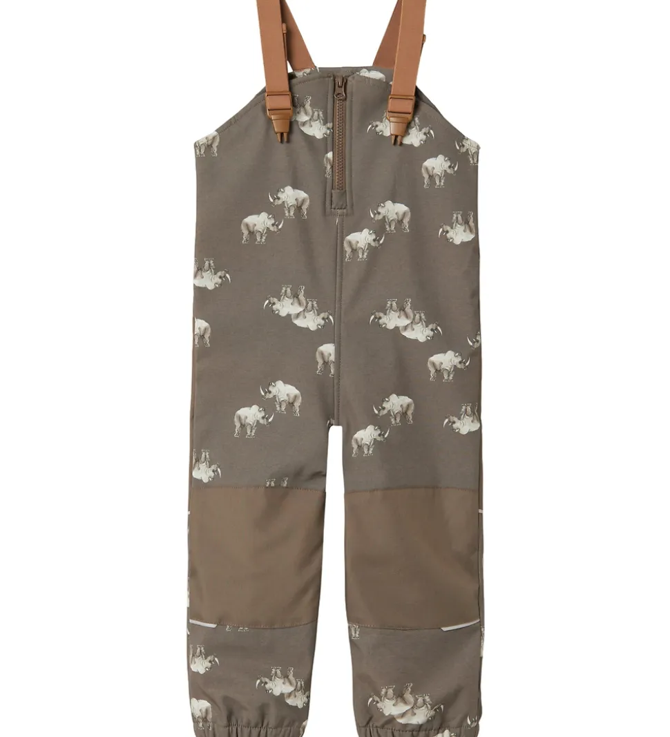 Seje Name It softshellbukser i mørk, støvet grøn og med alloverprint af næsehorn.