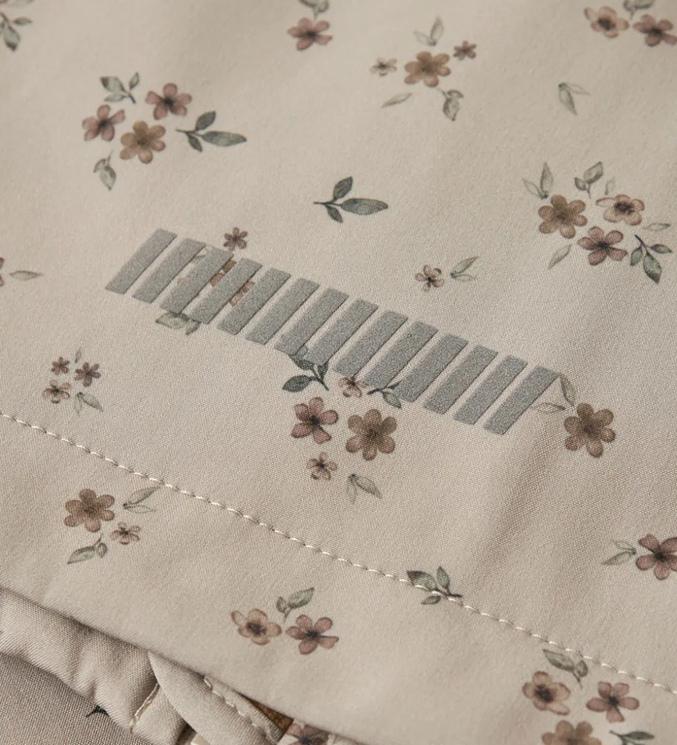 Dejlig Name It softshelljakke i en gråbeige nuance med et skønt småblomstret alloverprint.