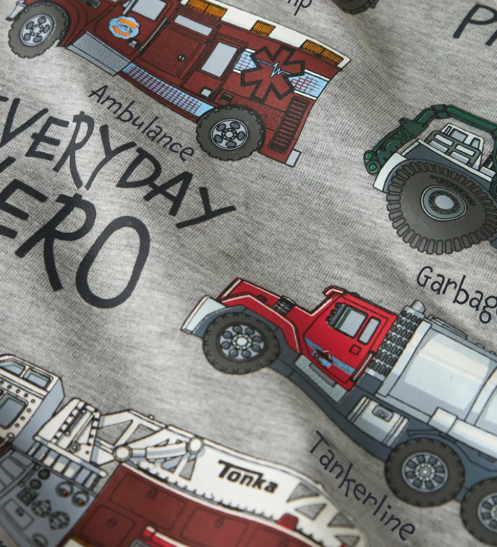 Sej Name It sweatshirt i gråmeleret med farverigt print af arbejdsmaskiner på fronten. Name It sweatshirten har lange ærmer og en rund halsudskæring. Indvendigt er der blødt, børstet bomuld.